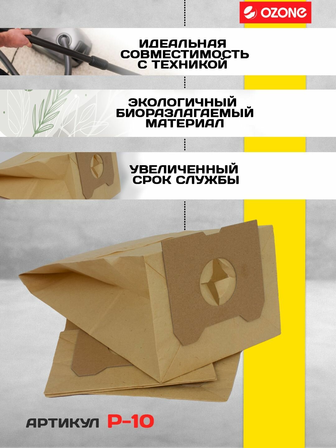 Мешки-пылесборники P-10 Ozone бумажные для пылесоса, 4 шт интересное: