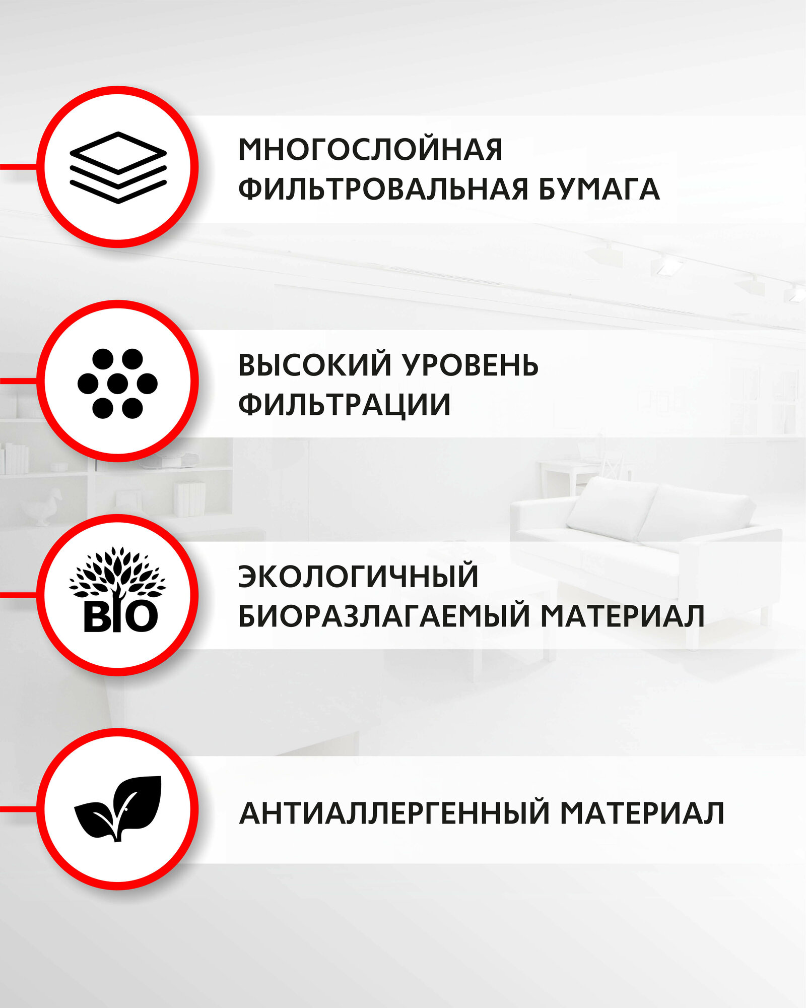 | Особенности | Высокий уровень фильтрации |