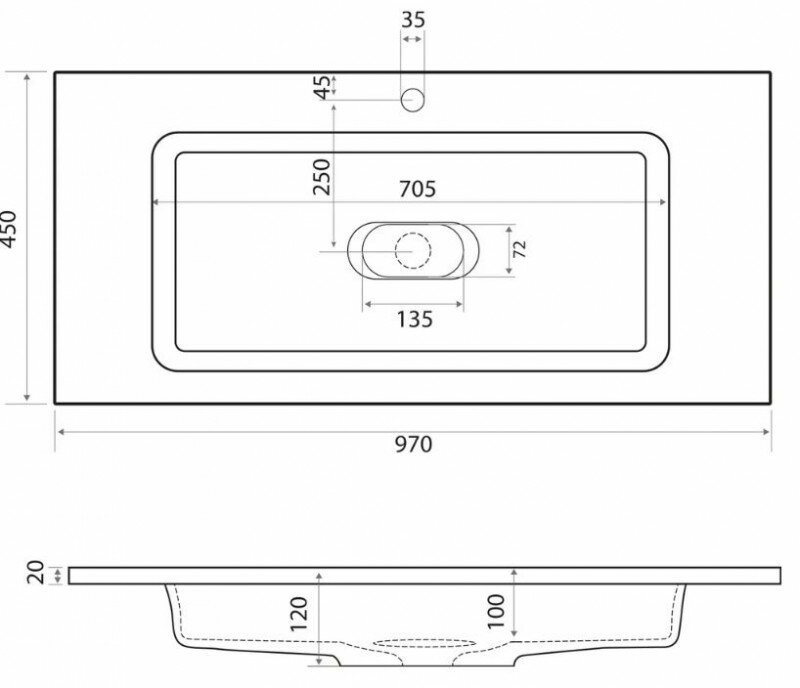 | Число размеченных отверстий под смеситель | отсутствуют |