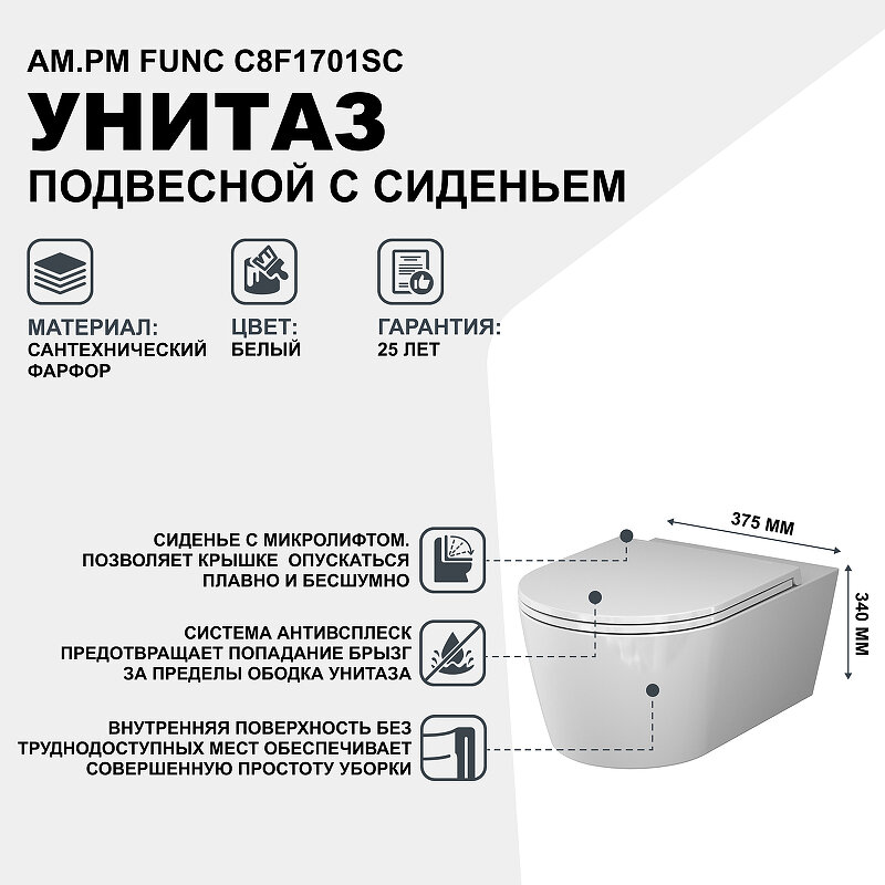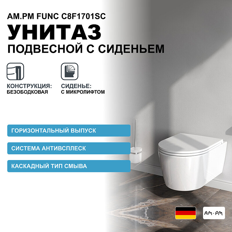 Унитаз AM.PM Func C8F1701SC подвесной с сиденьем Микролифт