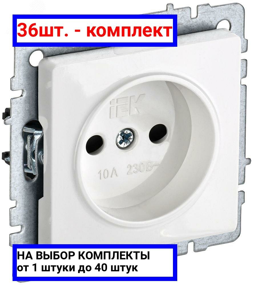 Купить 36шт. - BRITE Розетка без заземления без защитных шторок 10А РС10-1-0-БрБ белый / IEK; арт. BR-R10-10-K01; оригинал / - комплект 36шт