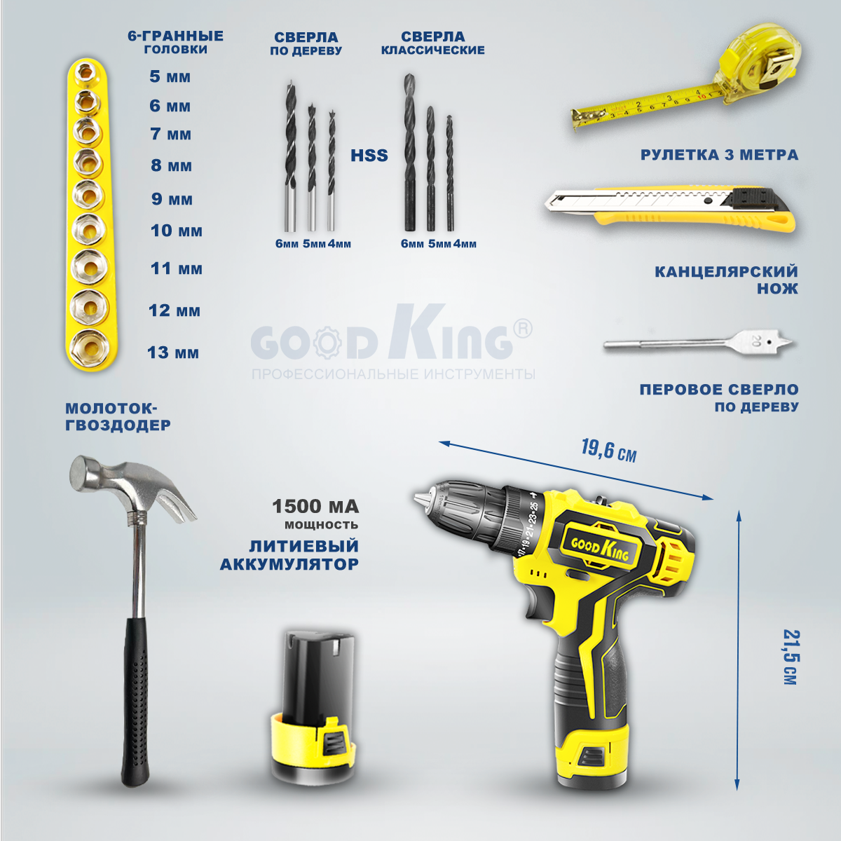 Набор инструментов с шуруповертом Goodking EC-1202117 интересное: