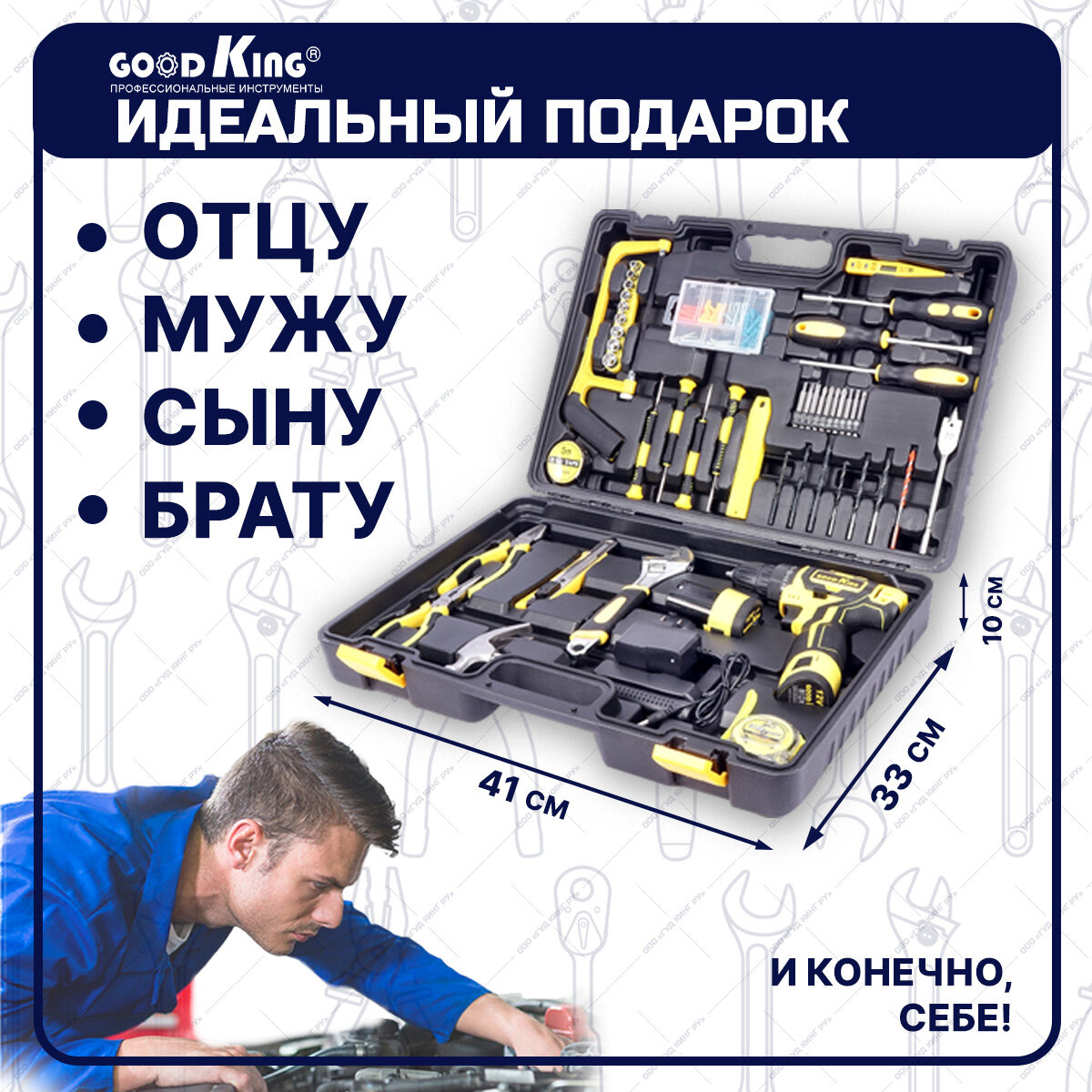 Аккумуляторная дрель-шуруповерт GOODKING EC-1202117 с набором инструментов 117 предметов, шурик, набор инструментов, для дома, для дачи