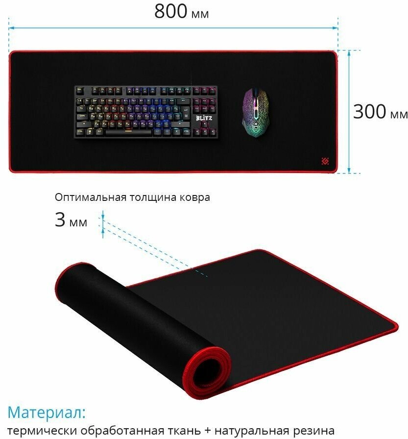Коврик Defender Игровой Black Ultra 800х300х3мм, Нескользящая каучуковая основа (50561)
