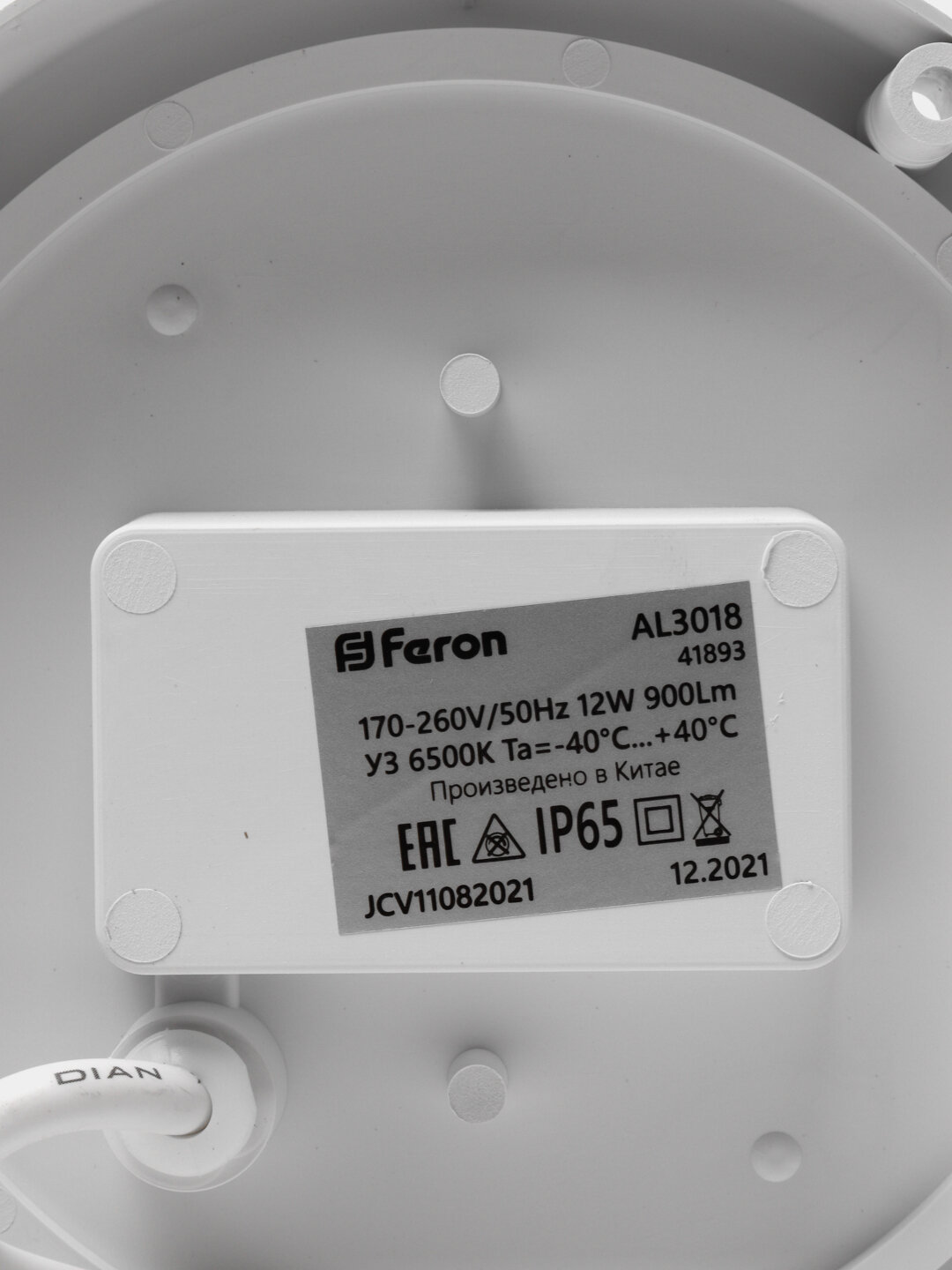 Светильник накладной светодиодный белый 12Вт 900Лм холодный белый свет IP65 6500К AL3018, 41893