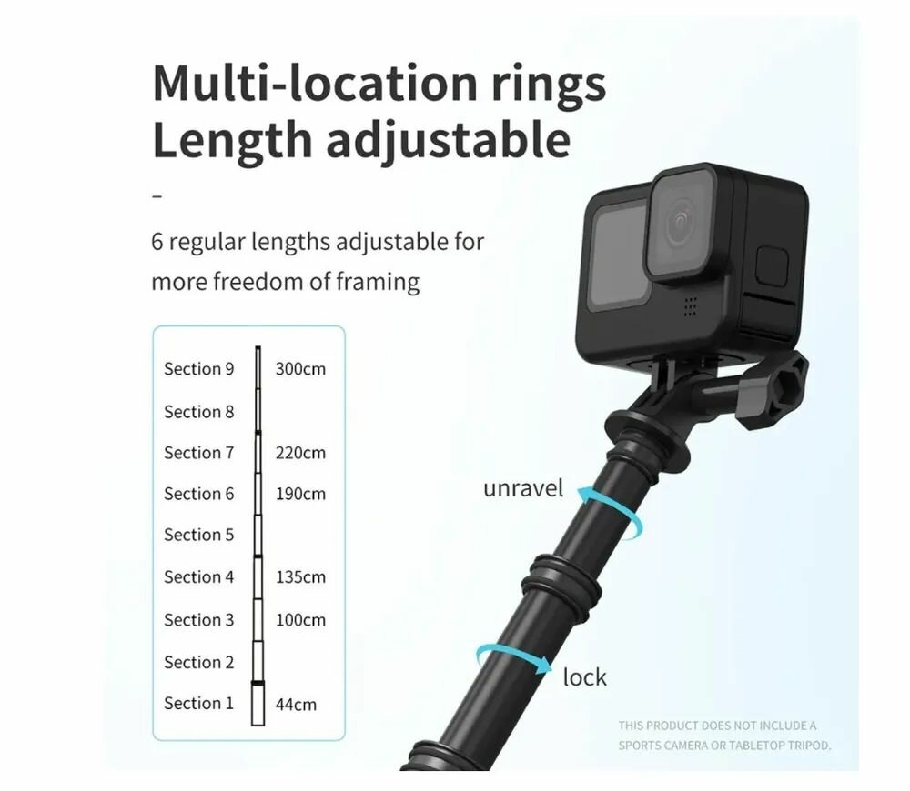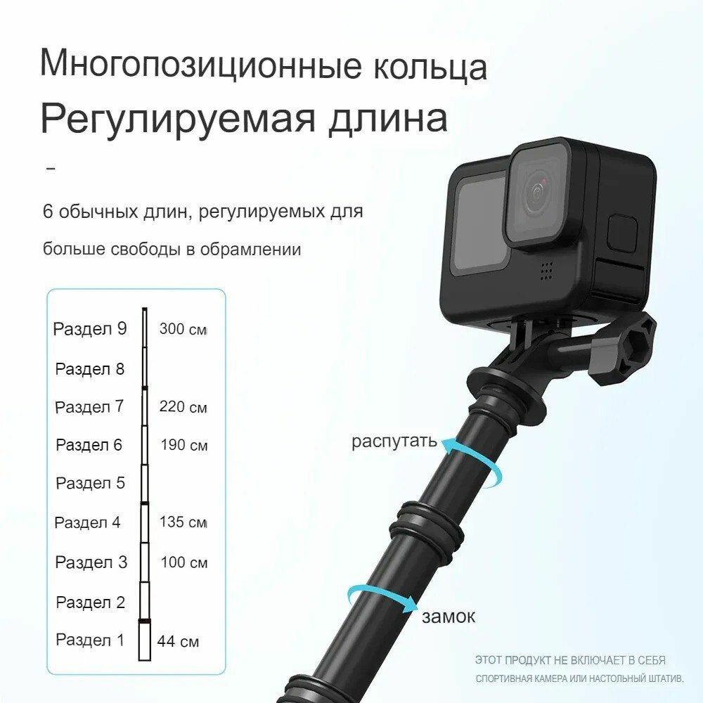 Купить Телескопический монопод для экшн-камер 3м TELESIN из углеродного волокна