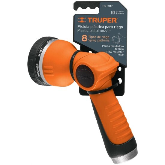 Пистолет для полива TRUPER / Трапер из термопластичной резины, черно-оранжевый, 8 режимов распыления, 20х7х3см / сад и огород