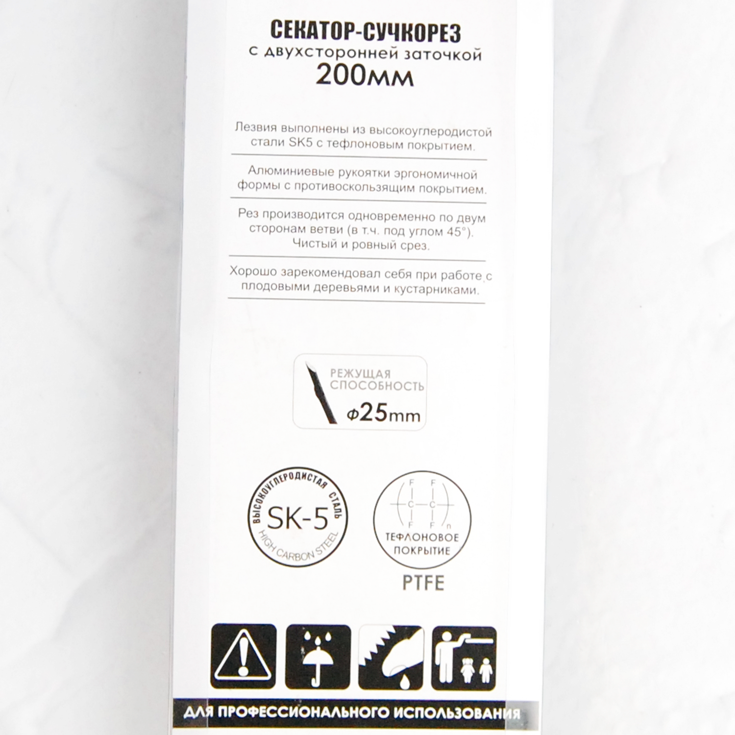 Секатор сучкорез садовый 2-х сторонней заточкой 200мм SK5 65 Mn HCS Тефлон SKRAB 28482