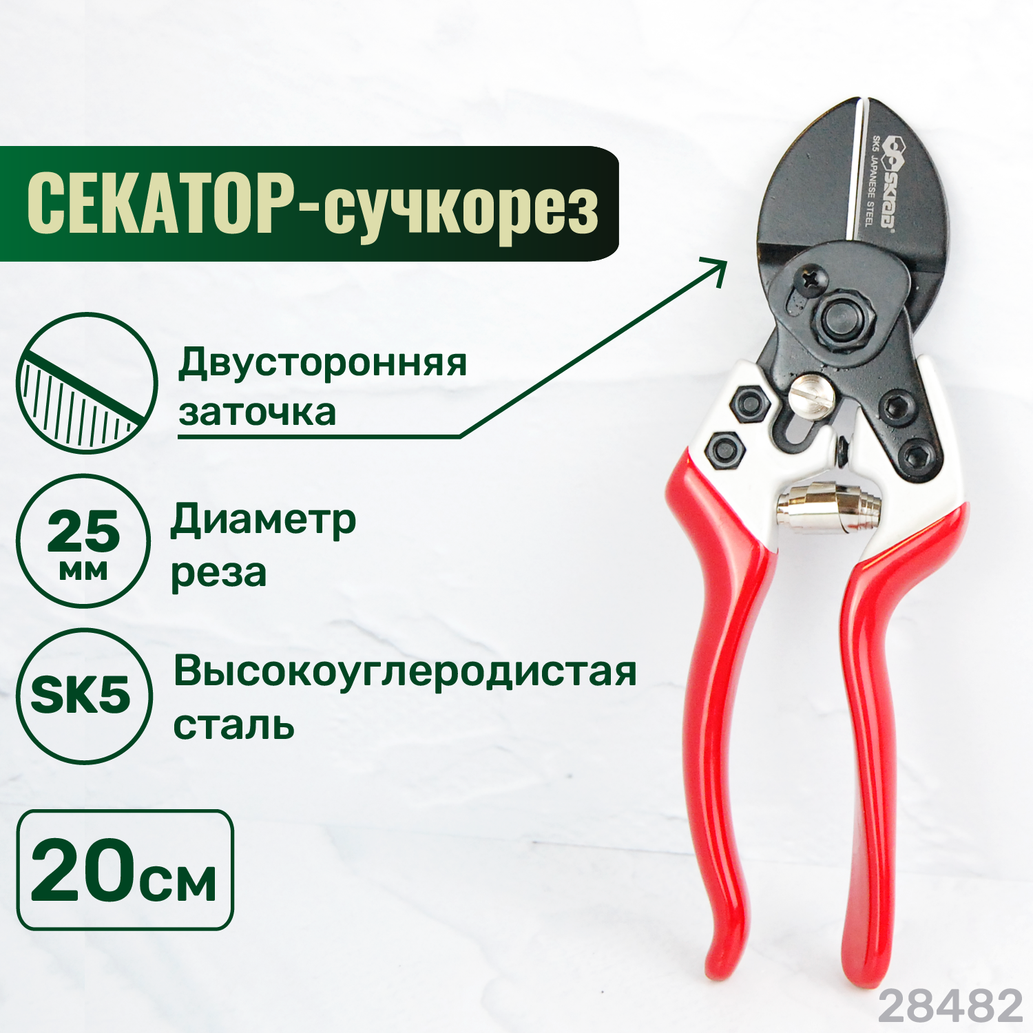 Секатор-сучкорез SKRAB 200 мм, 2-х сторонний, тефлон, SK5 28482