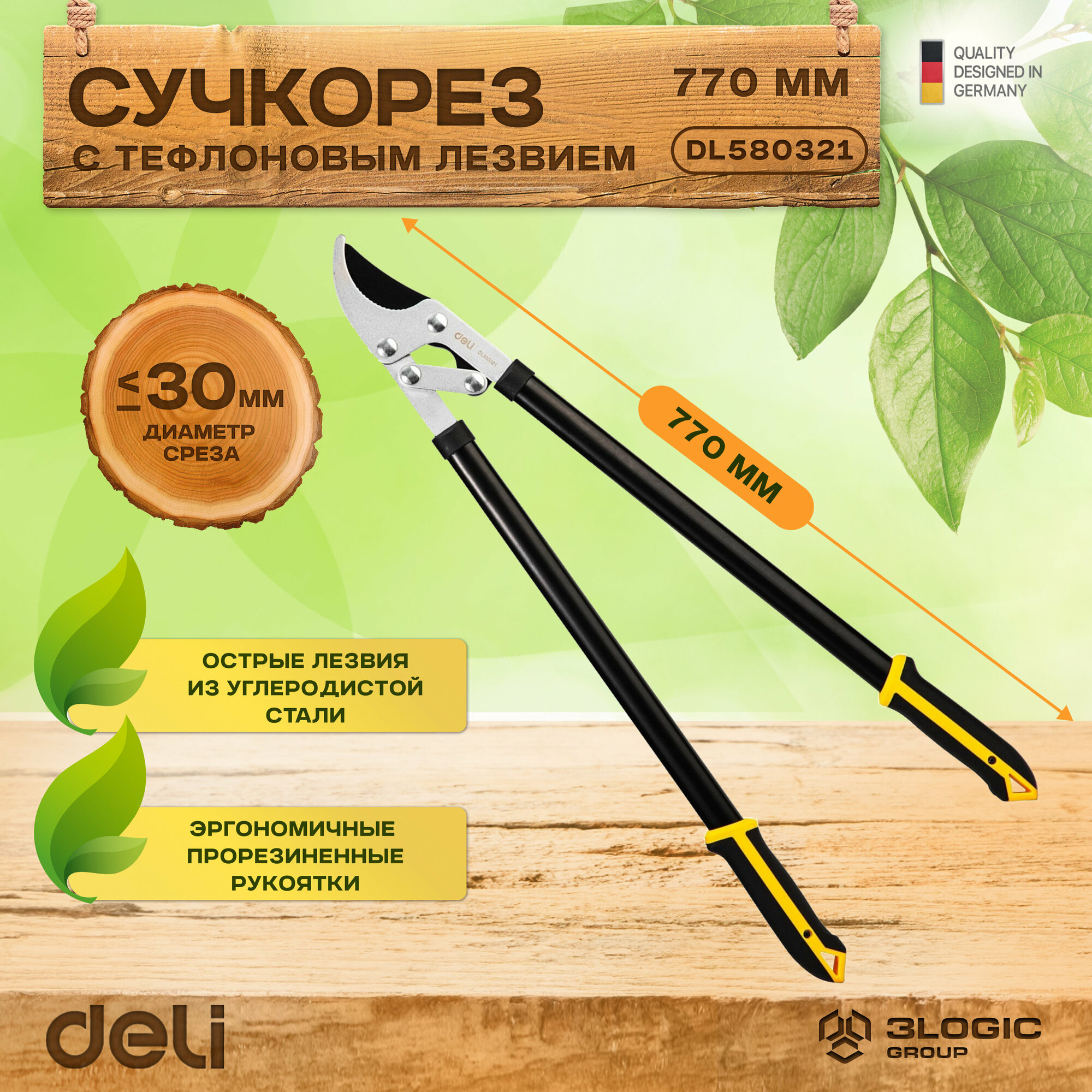 Сучкорез садовый Deli DL580321 770мм, макс. диаметр резки 30мм, сталь 55С