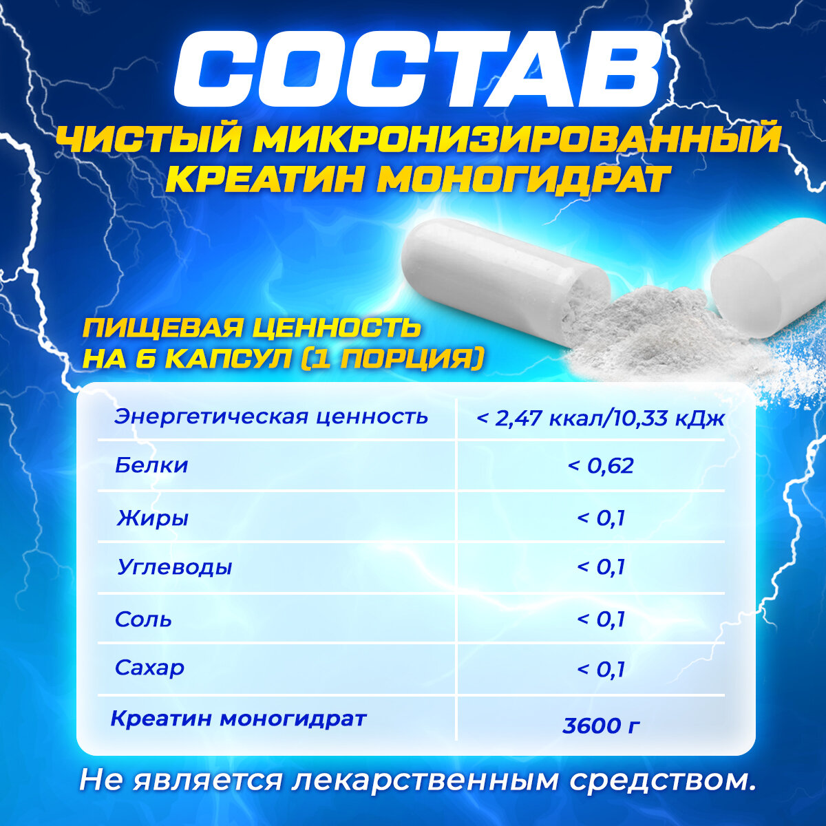 Креатин Моногидрат 100% в капсулах, 120 капсул, Creatine для роста мышц и силы, Rocket Nutrition