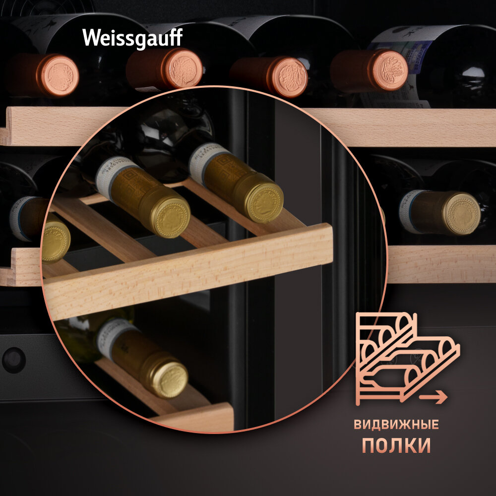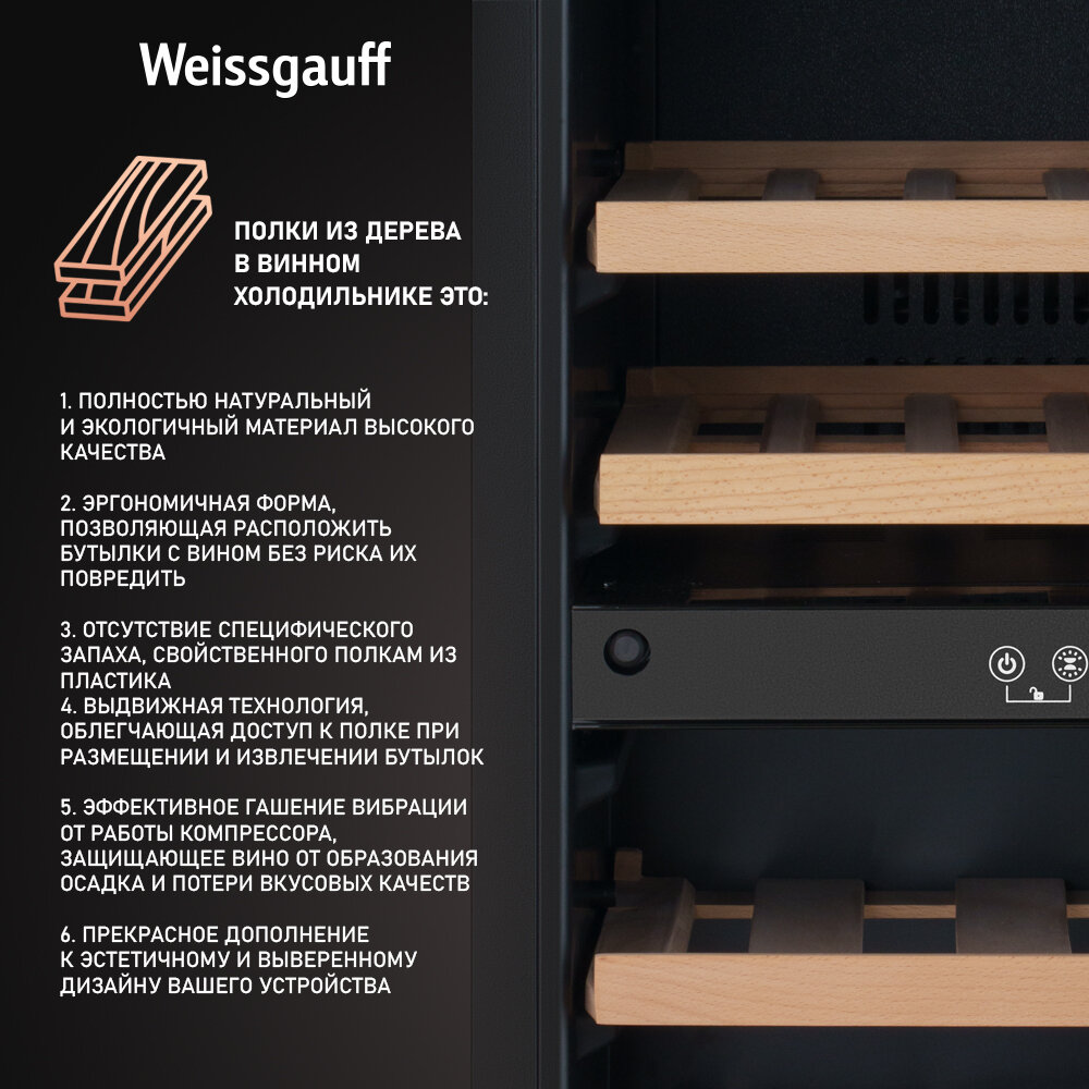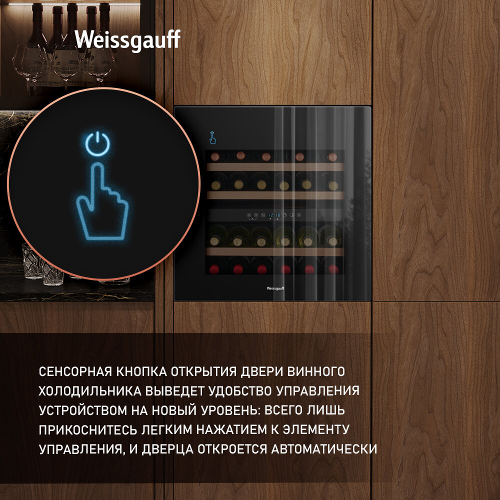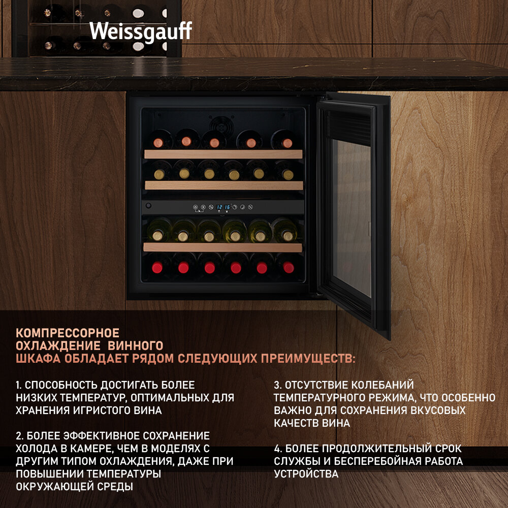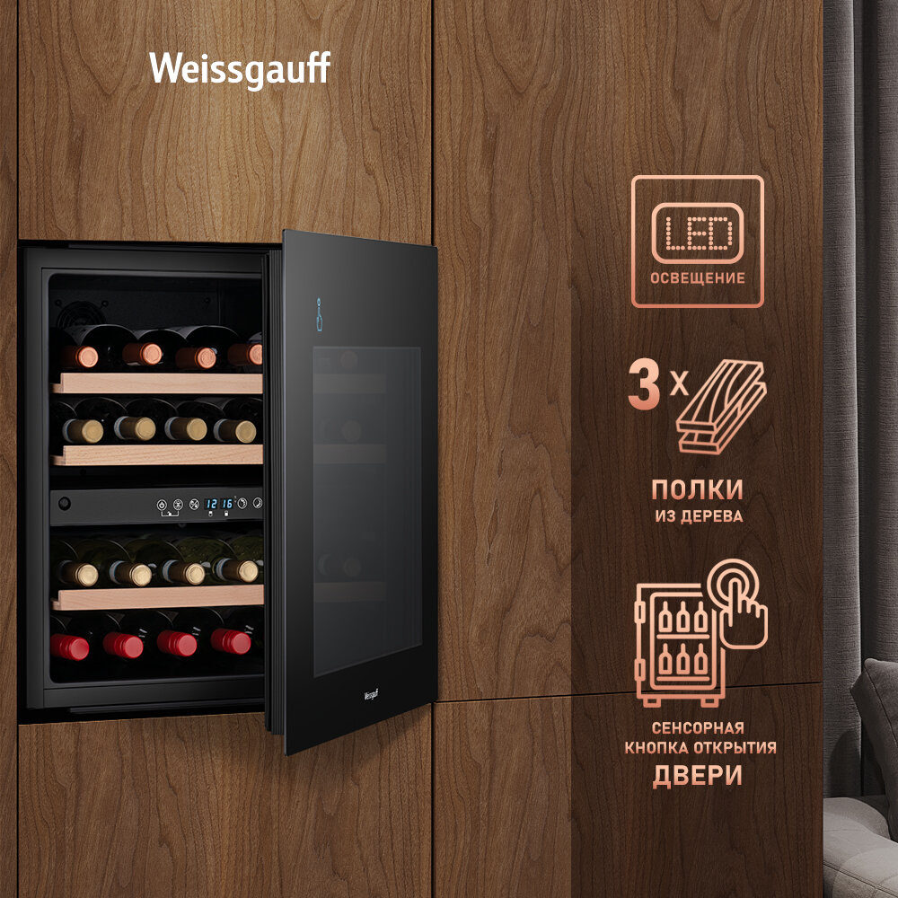Встраиваемый винный холодильник Weissgauff WWCI-36 DB Dual Zone компрессорный холодильник для вина, 36 бутылок, 3 года гарантии интересное:
