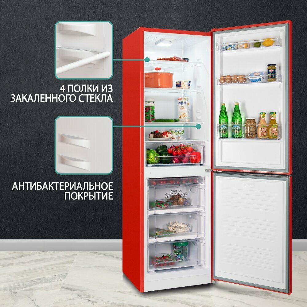 Холодильник NORDFROST NRB 162NF R двухкамерный,красный, No Frost в МК, 310 л