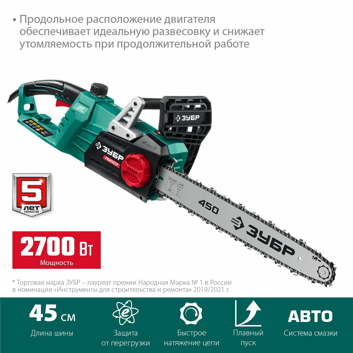 ЗУБР 2700 Вт, 45 см шина, пила цепная электрическая