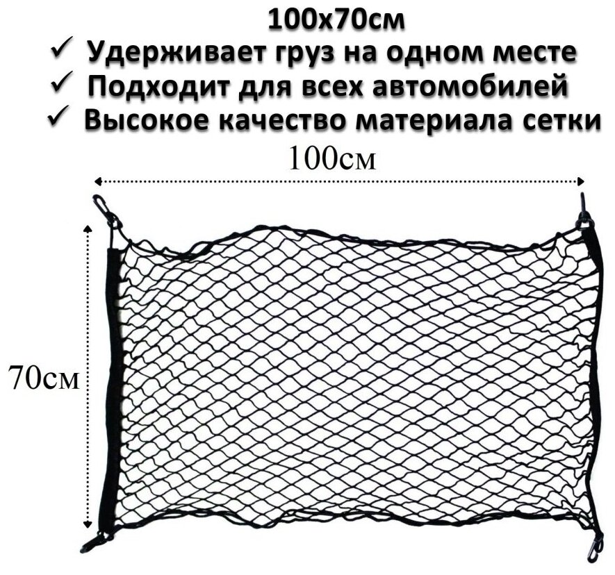 | Плюсы: | Крепкая сетка, надежные крепления, хорошо тянется и фиксирует груз. |