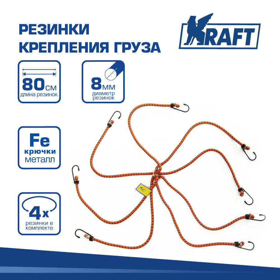 KRAFT KRAFT Набор резинок Паук 4 шт. 80 см , D=8 мм (метал.крючки) KT860004 KRAFT KT860004 KRAFT KT860004
