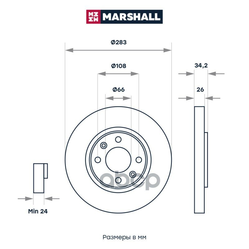 Диск тормозной Citroen C4 06-, Berlingo 08-; Peugeot 307 01-, 308 07-14 передний 283 x 26 Marshall