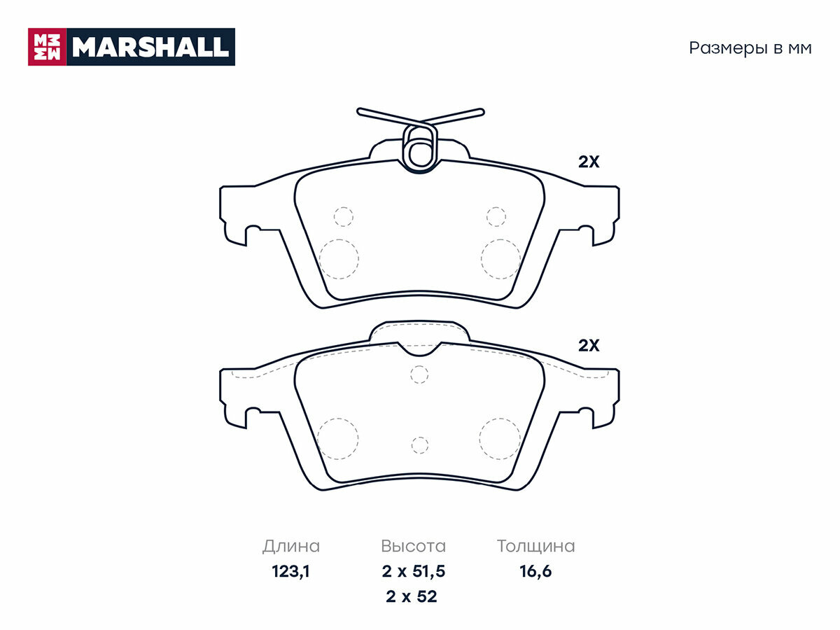 MARSHALL M2625212 Торм. колодки дисковые задн. Ford CMAX II 10, Ford Focus III 10, Ford Kuga II 12 Marshall M2625212