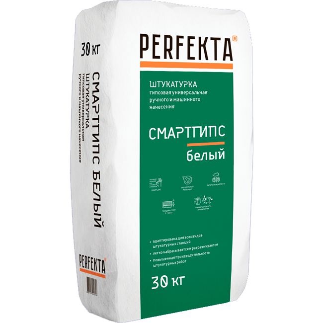 Перфекта СмартГипс штукатурка гипсовая (30кг) / PERFEKTA СмартГипс штукатурка гипсовая белая (30кг)