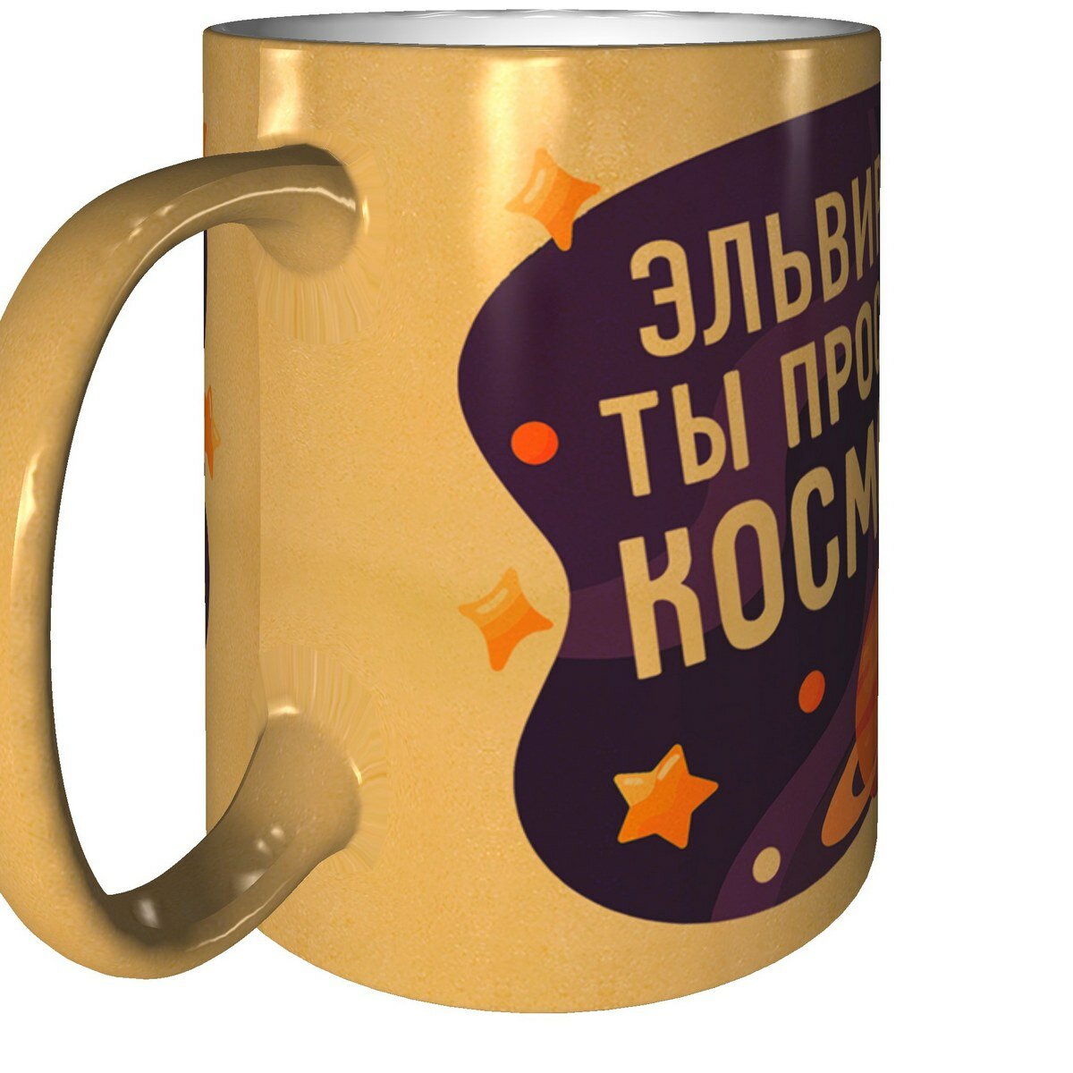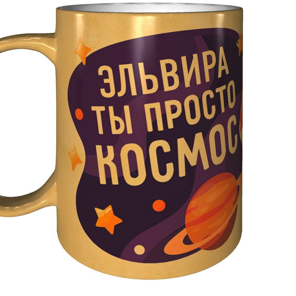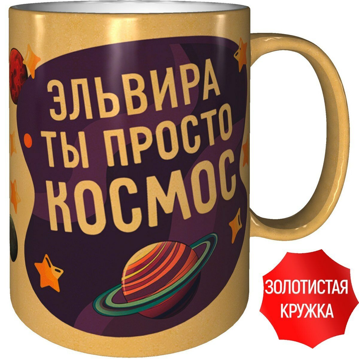 Кружка Эльвира ты просто космос - золотистого цвета интересное: