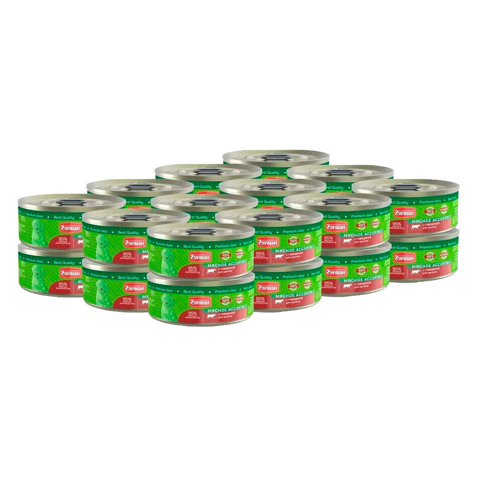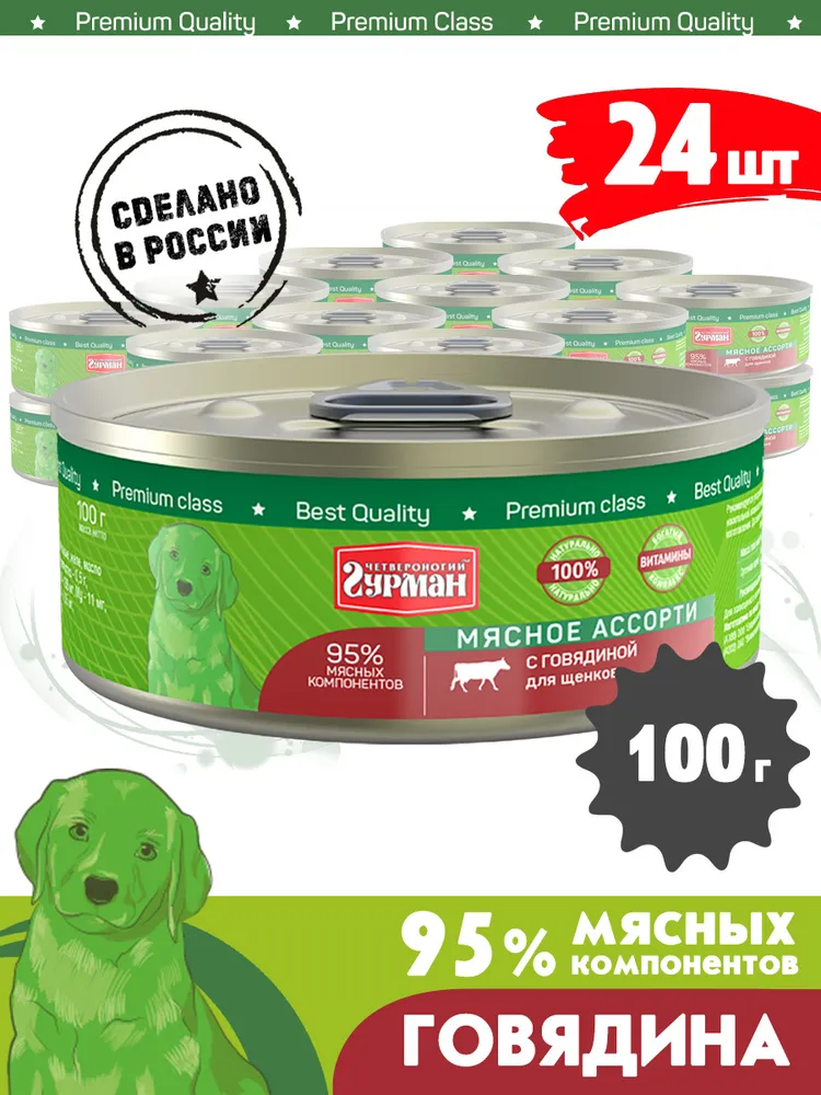 Четвероногий Гурман для щенков Мясное ассорти с Говядиной,консервы 100г (24 банки)