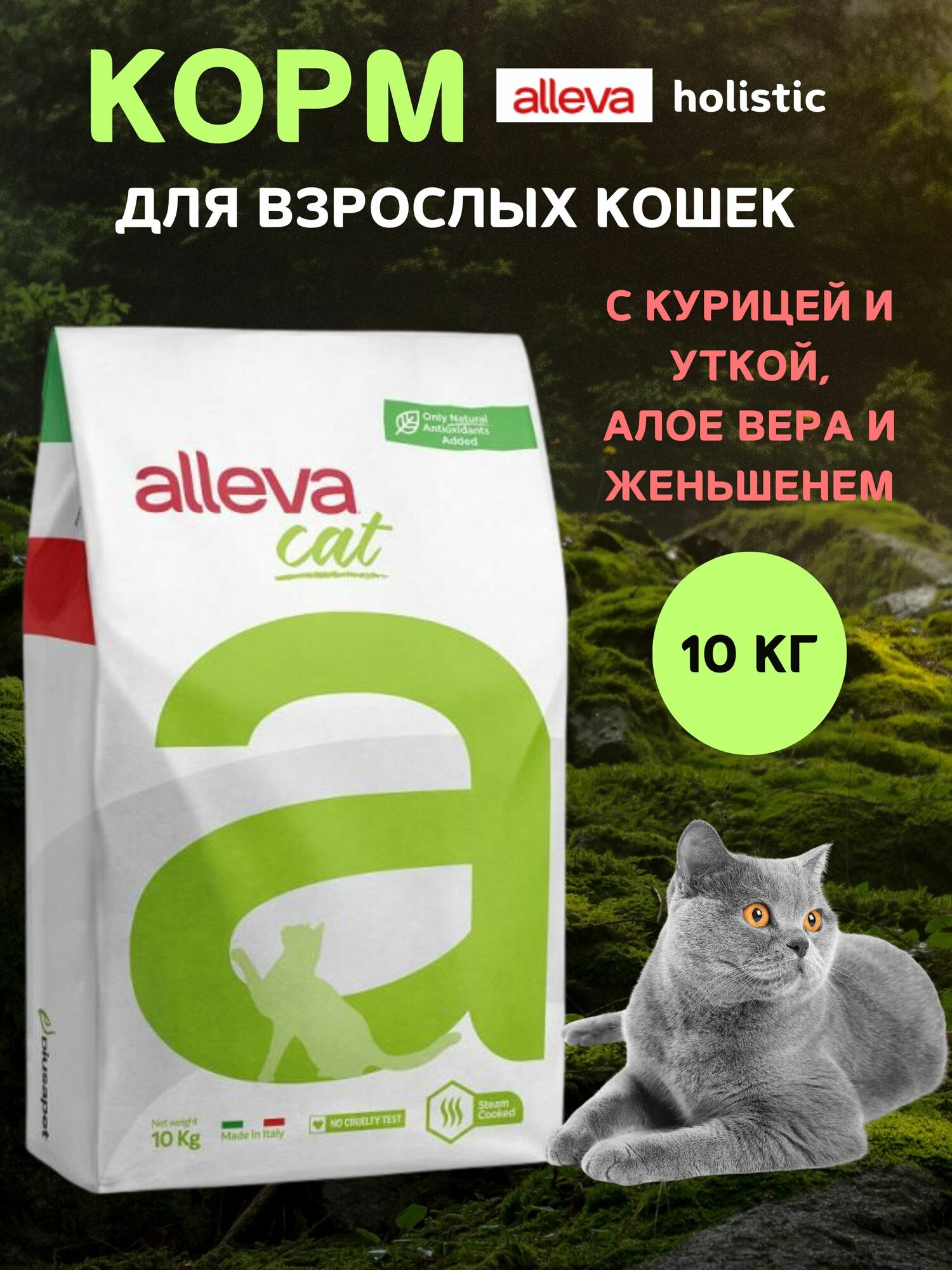 ALLEVA HOLISTIC CAT для кошек Adult Chicken Duck / взрослых с курицей и уткой, алое вера и женьшенем 10 кг 1684 новинка, (1 шт)
