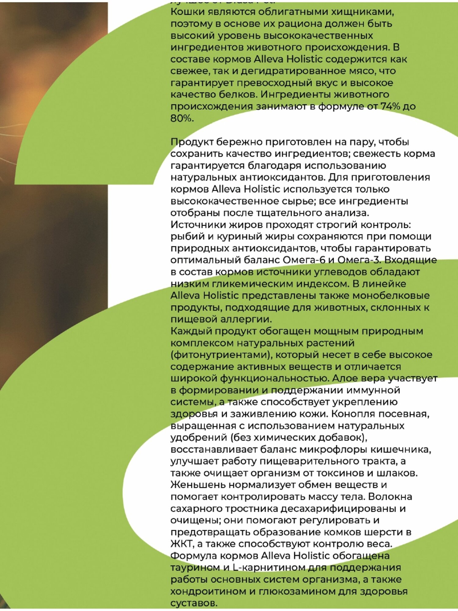 Alleva (Алева) корм для взрослых кошек холистик с курицей и уткой, алое вера и женьшенем 1,5 кг