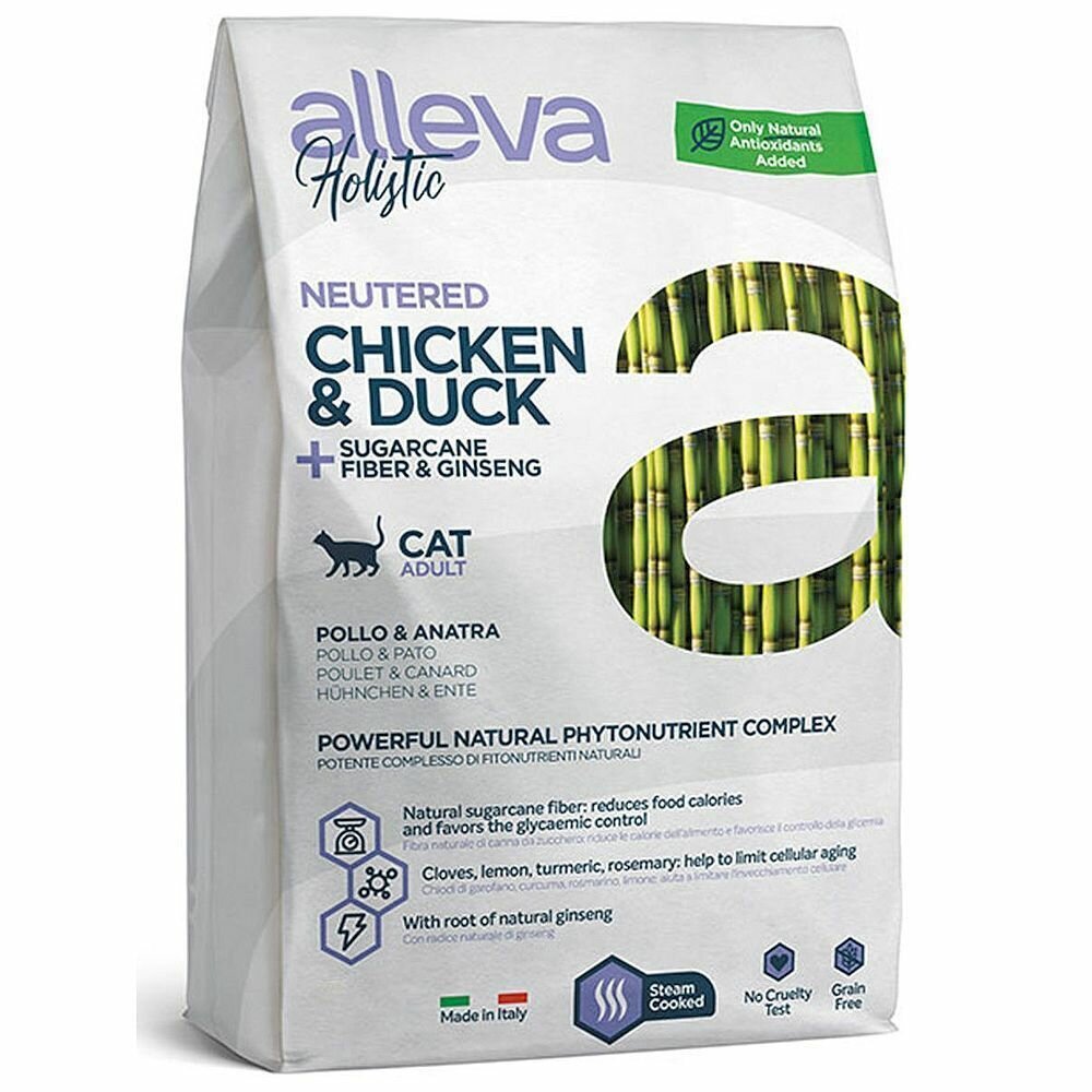Сухой корм ALLEVA HOLISTIC CAT ADULT CHICKEN & DUCK, для взрослых котов/кошек, беззерновой, с курицей, уткой, алоэ вера и женьшенем, 1,5 кг