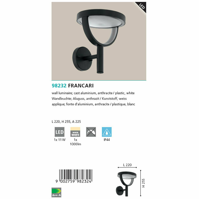 Ниже Вы можете прочитать отзывы на Настенный светильник уличный Francari 98232, ознакомится с подробными характеристиками, посмотреть интересные обзоры и фотографии на Настенный светильник уличный Francari 98232.