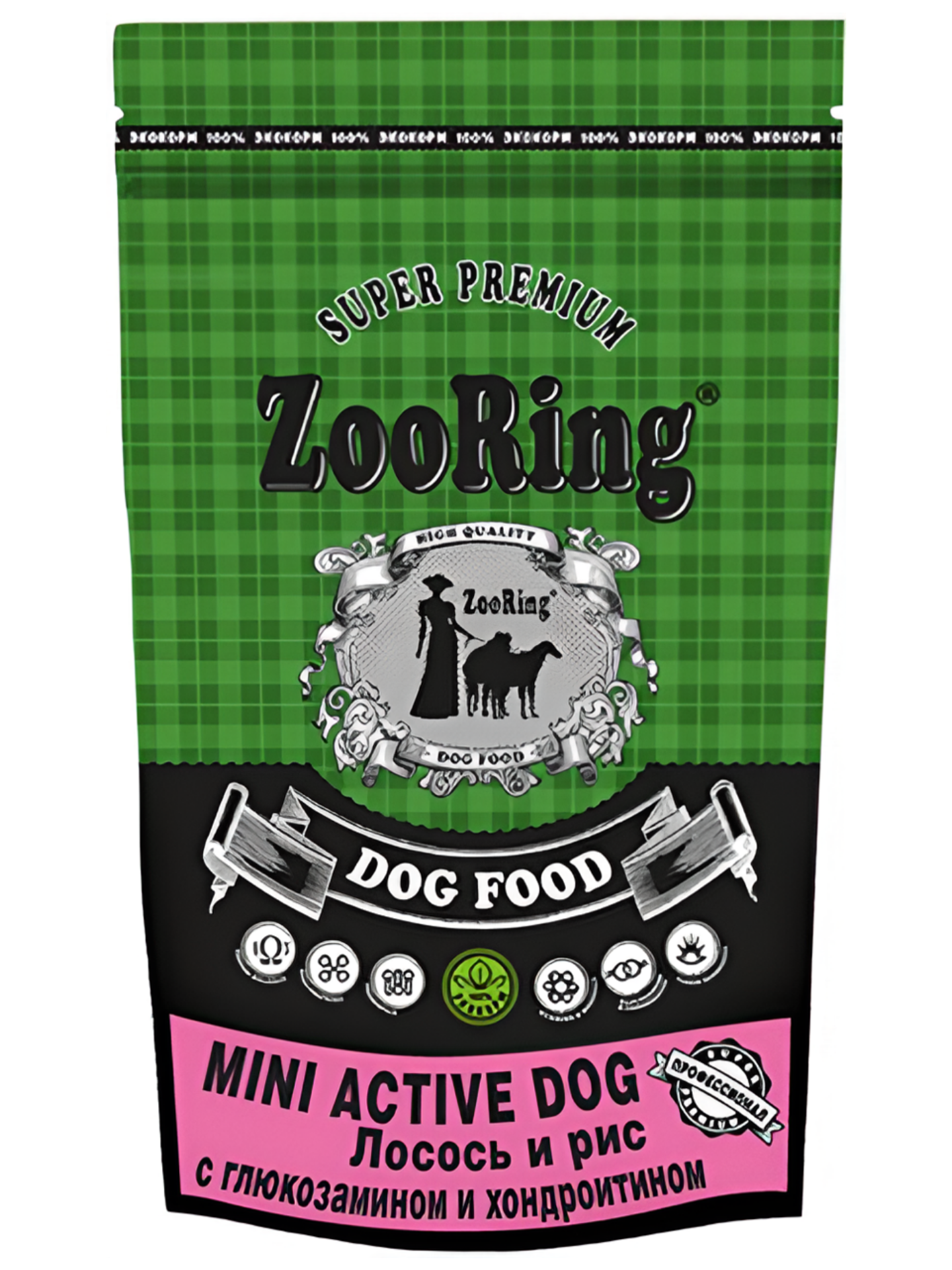 Сухой корм для собак ZooRing с глюкозамином и хондроитином, для активных животных, лосось, с рисом 2 кг (для мелких пород)