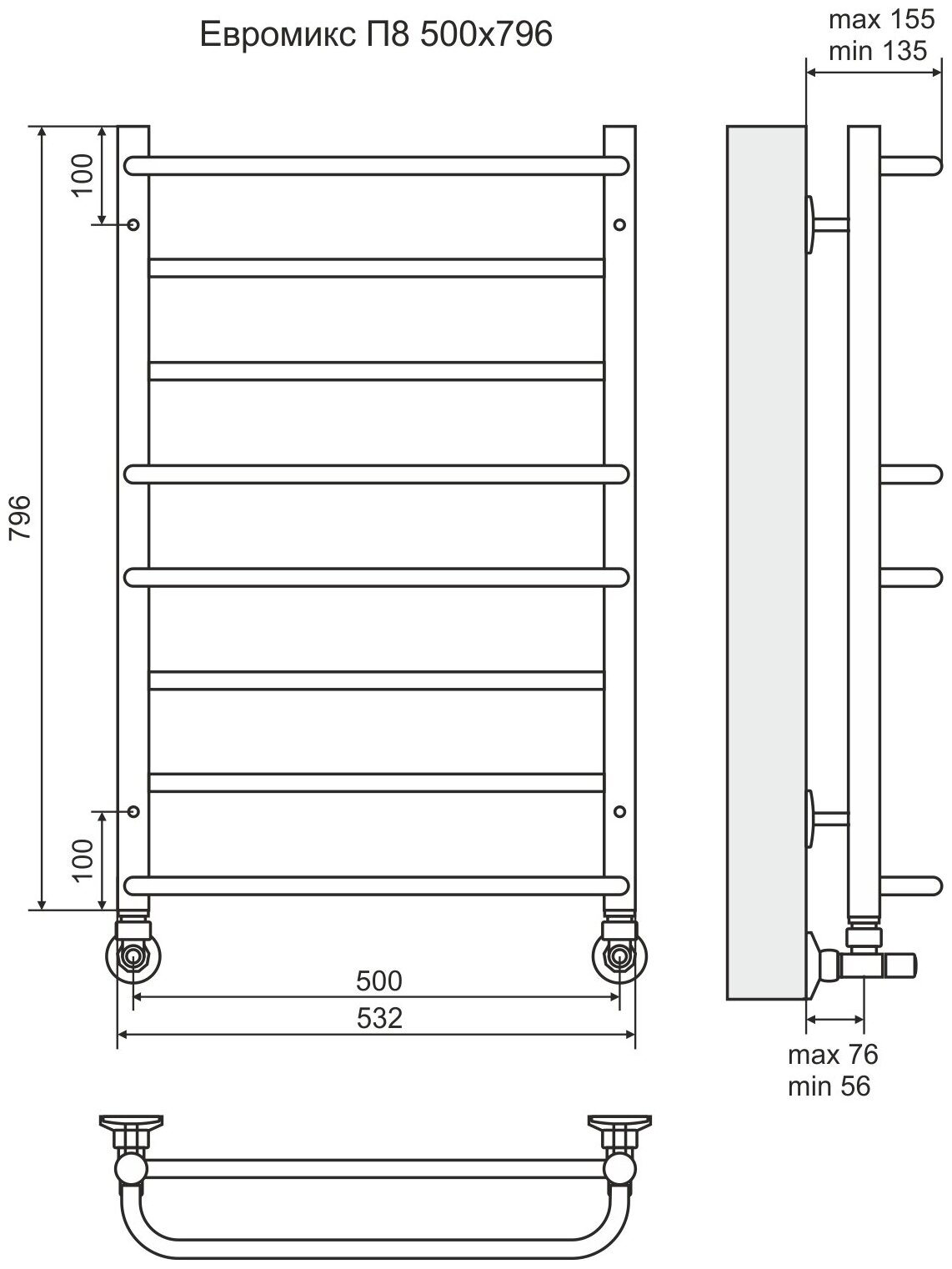 Полотенцесушитель водяной Terminus Евромикс П8 500x796 4670030723123 интересное: