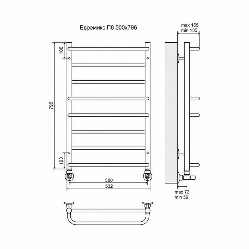 Полотенцесушитель Евромикс 32/20 П8, 500мм*796мм, Terminus (Россия), арт ЕвромиксП8-500796