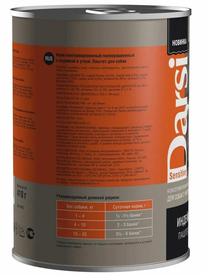 СохранитьВлажный корм для собак 410 гр, 9 шт, DARSI, Индейка и Утка интересное: