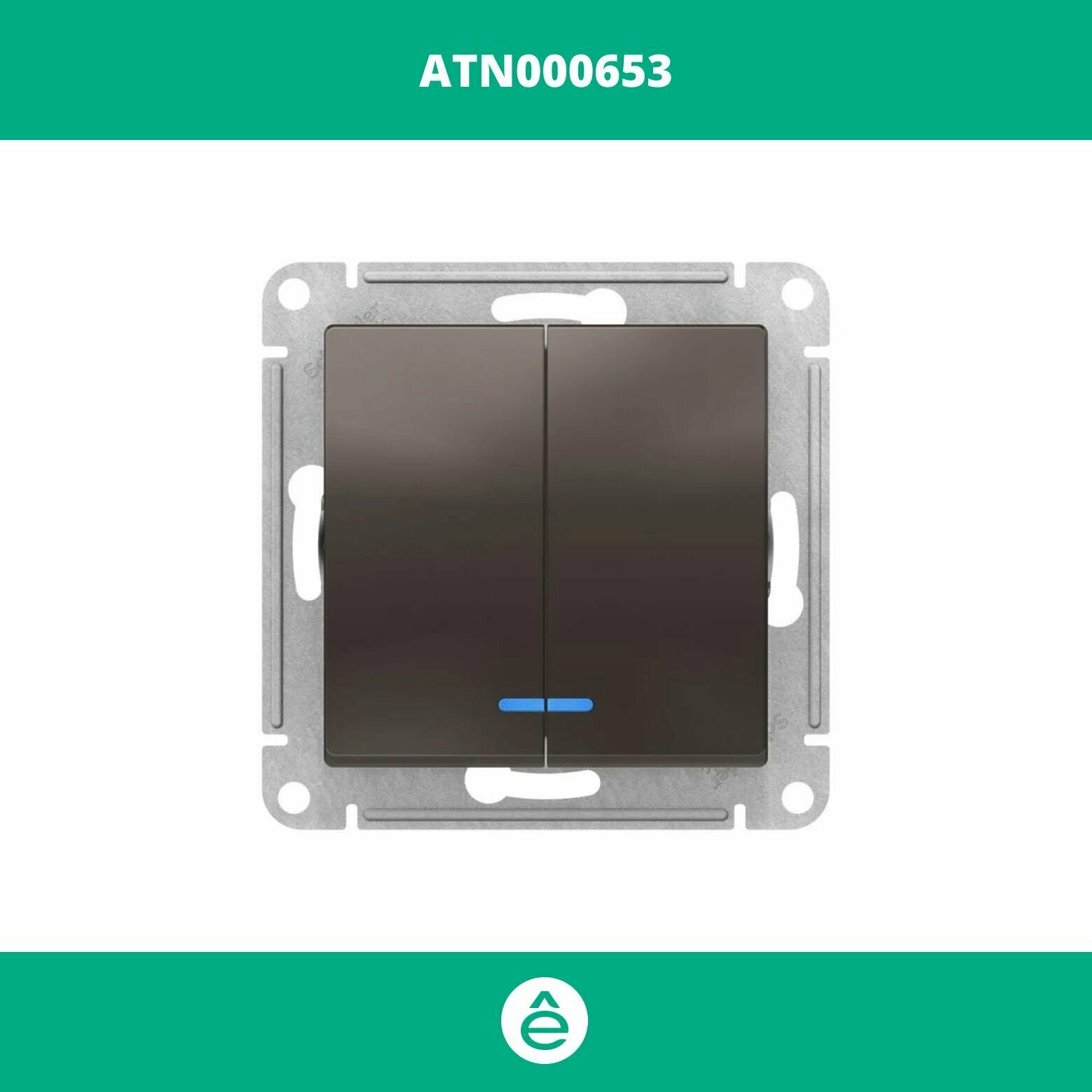 Купить Выключатель электрический Schneider Electric (Systeme Electric) Atlas Design 2-клавишный с подсветкой, 10А, 10 AX, Мокко ATN000653 - 3 шт.
