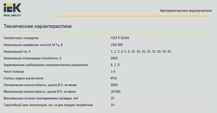 | Отключающая способность | 6 кА |