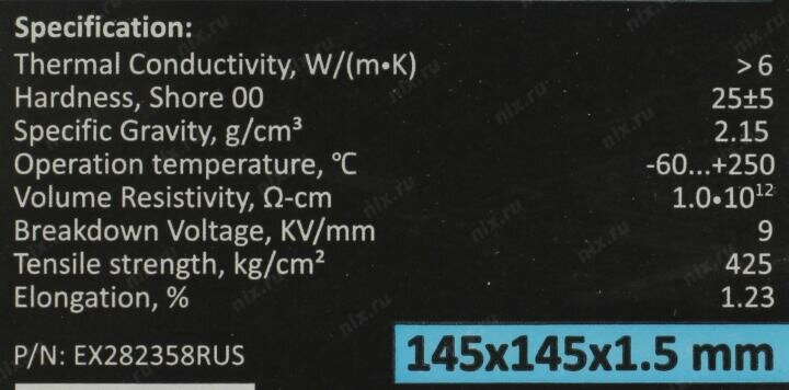 Термопрокладка ExeGate Epg-6wmk, 145x145x1.0 mm Ex282359rus