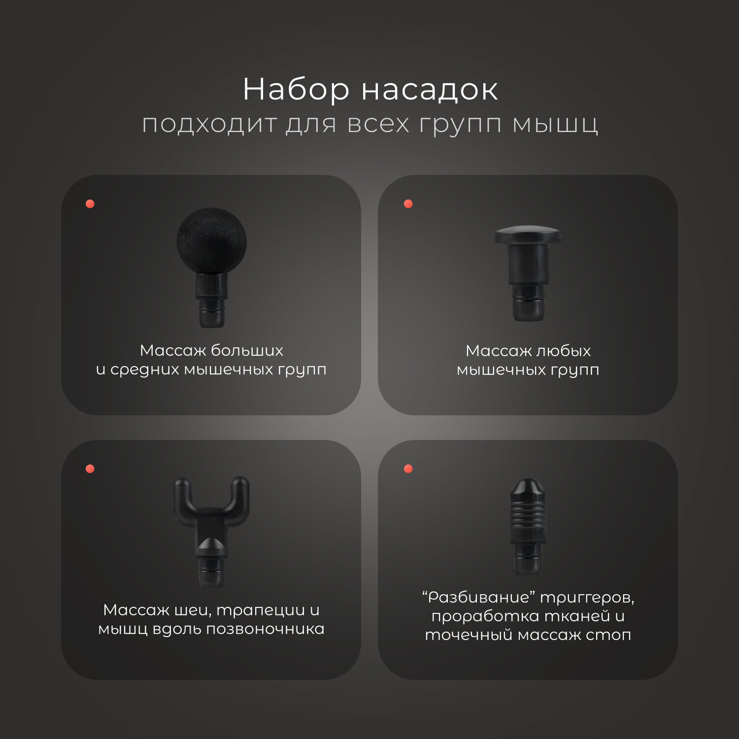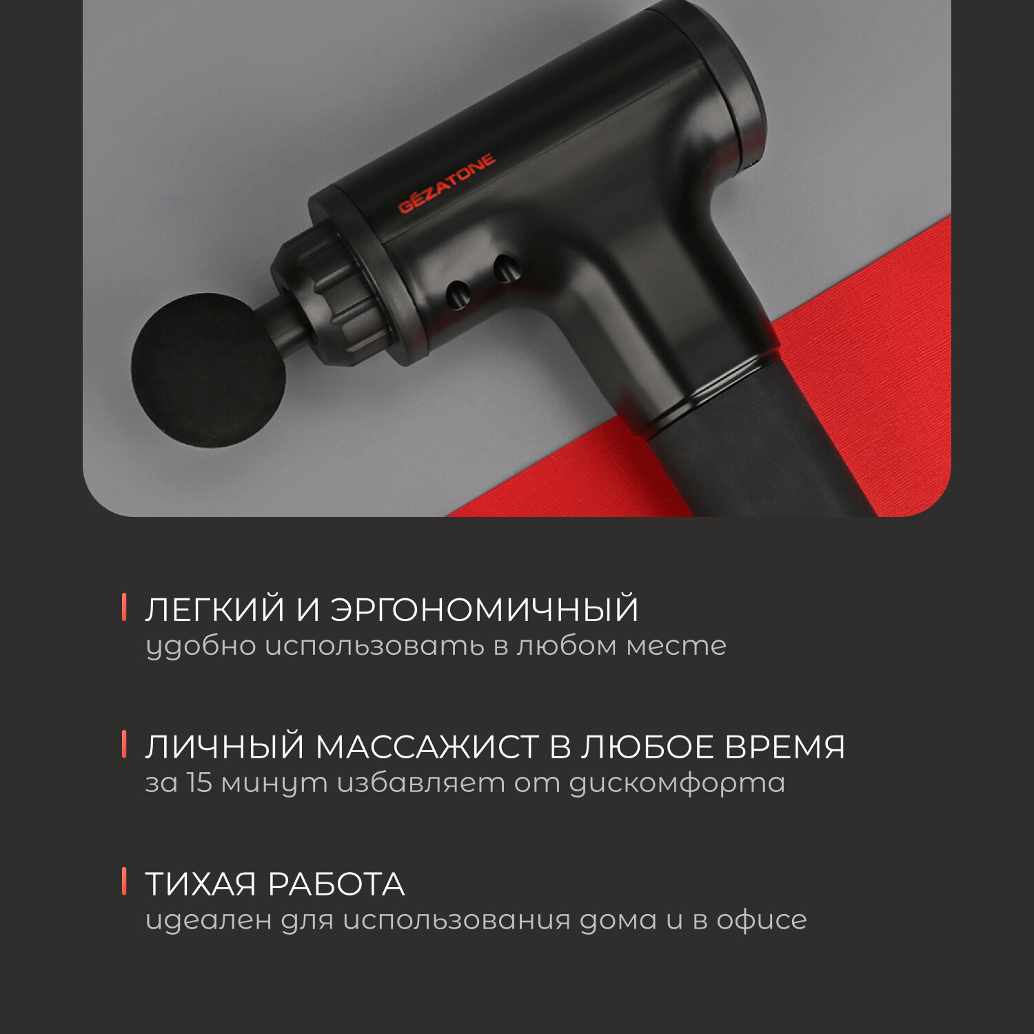 Массажер для тела Gezatone AMG140, перкуссионный, 4 насадки, чёрный