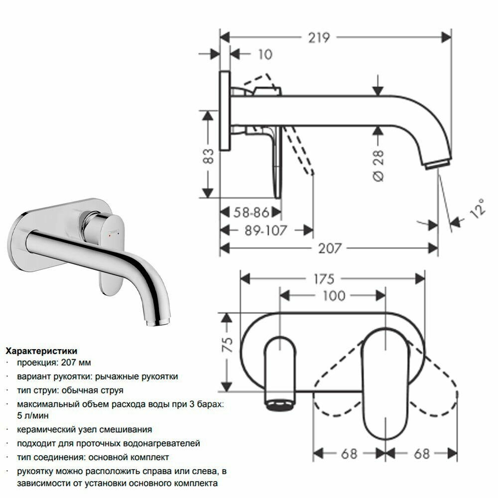 | Длина излива | 207 мм |