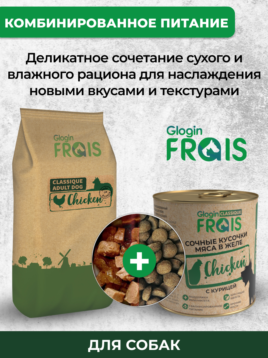Купить Сухой корм FRAIS 15кг для собак с мясом курицы CLASSIQUE