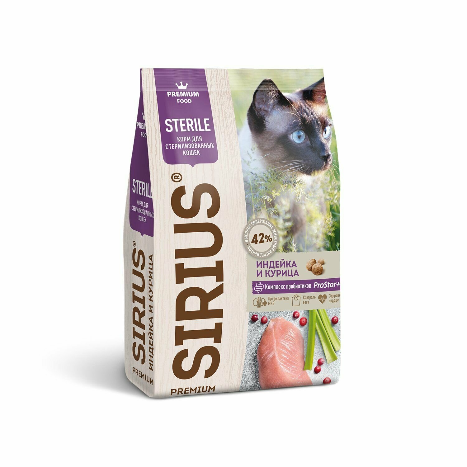 Сухой корм сириус SIRIUS PREMIUM для стерилизованных кошек, индейка и курица, 1.5 кг