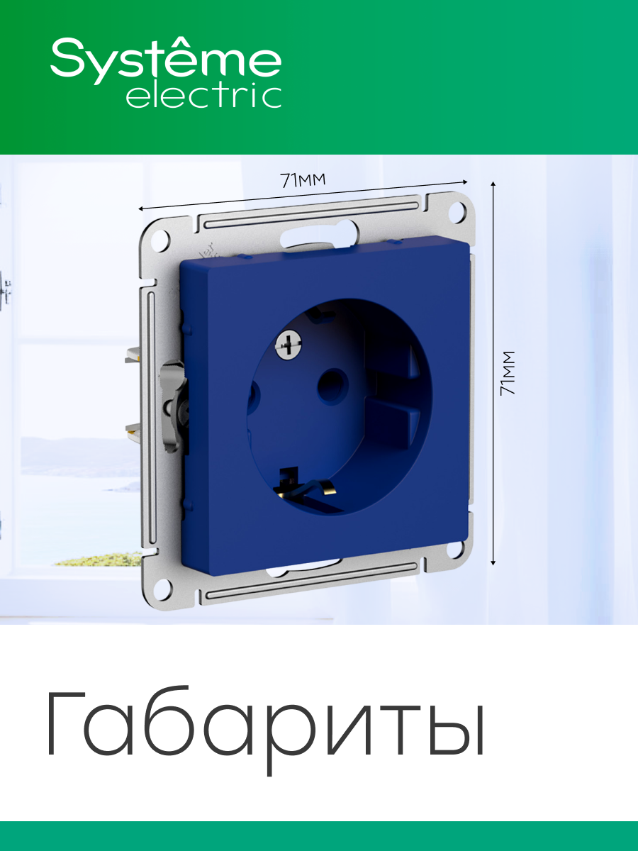 10 шт. Systeme Electric AtlasDesign Изумруд, Розетка c заземлением со шторками, 16А, механизм, ATN000845