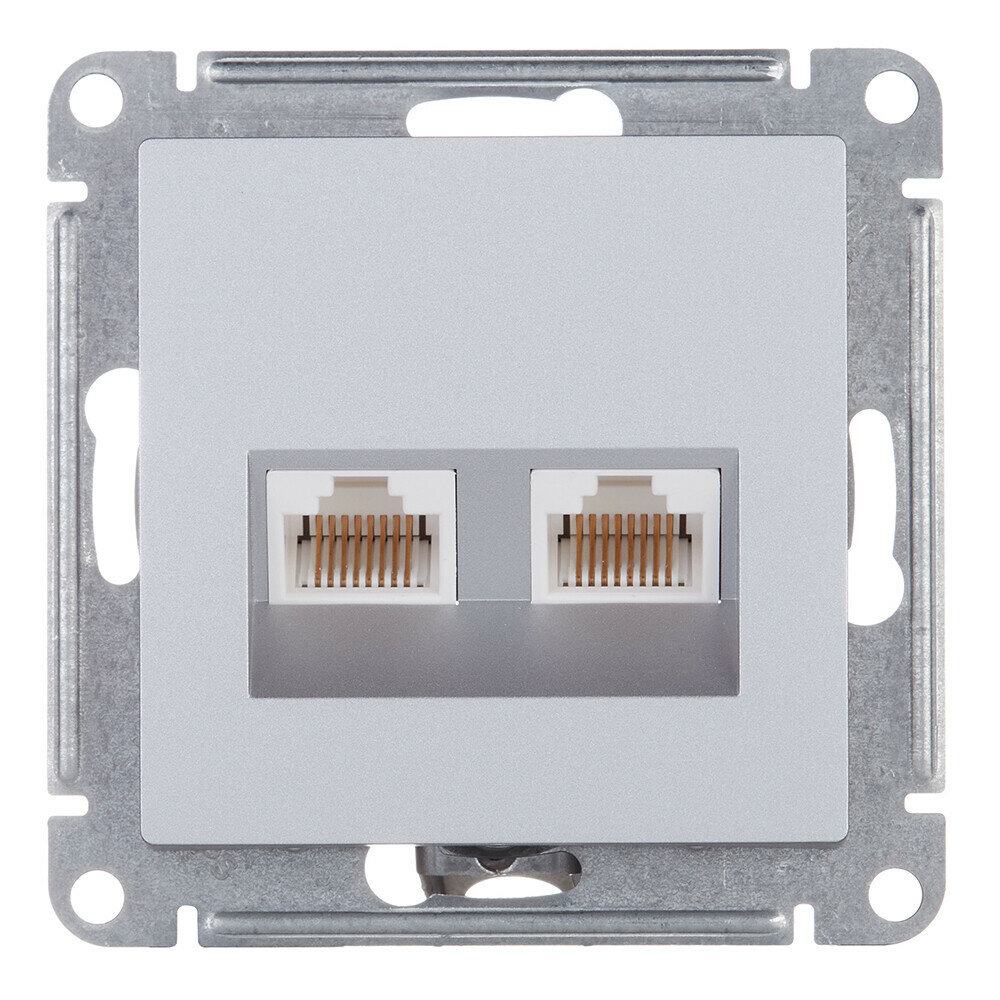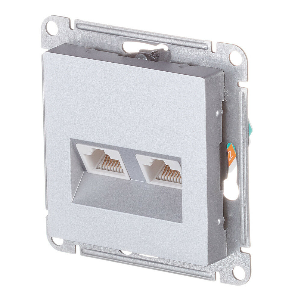 Купить Systeme Electric ( Schneider Electric) Механизм розетки компьютерной 2-м AtlasDesign RJ45 + RJ45 кат.5e алюм. ATN000385