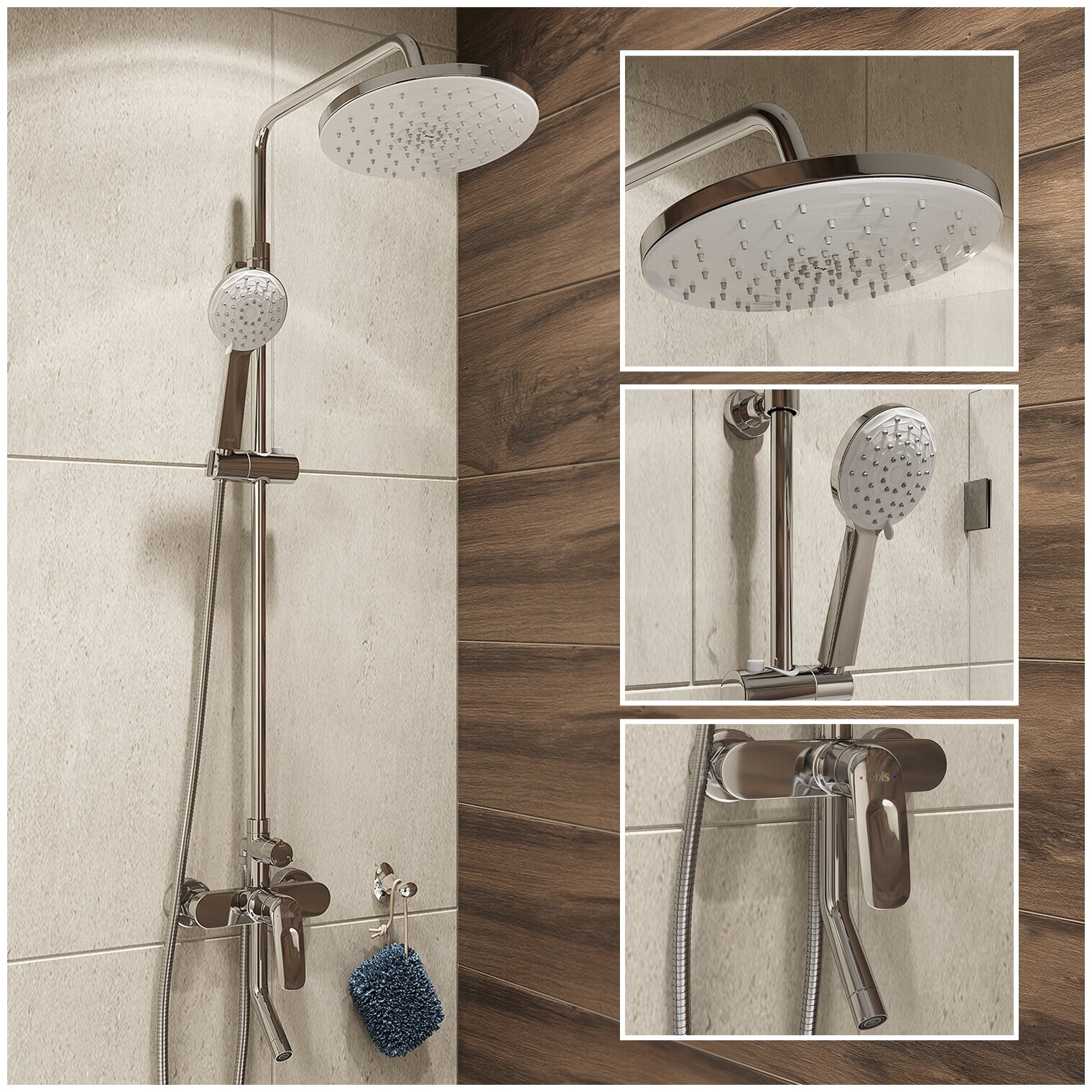 | Дополнительная информация | высота стойки для душа: 1218 мм; диаметр душевой лейки: 105 мм; диаметр верхнего душа: 228 мм |