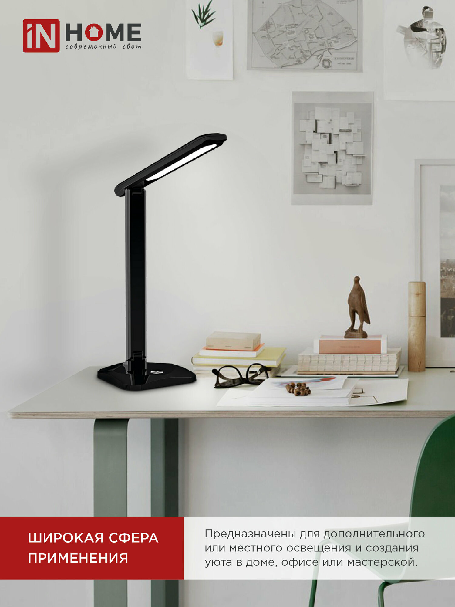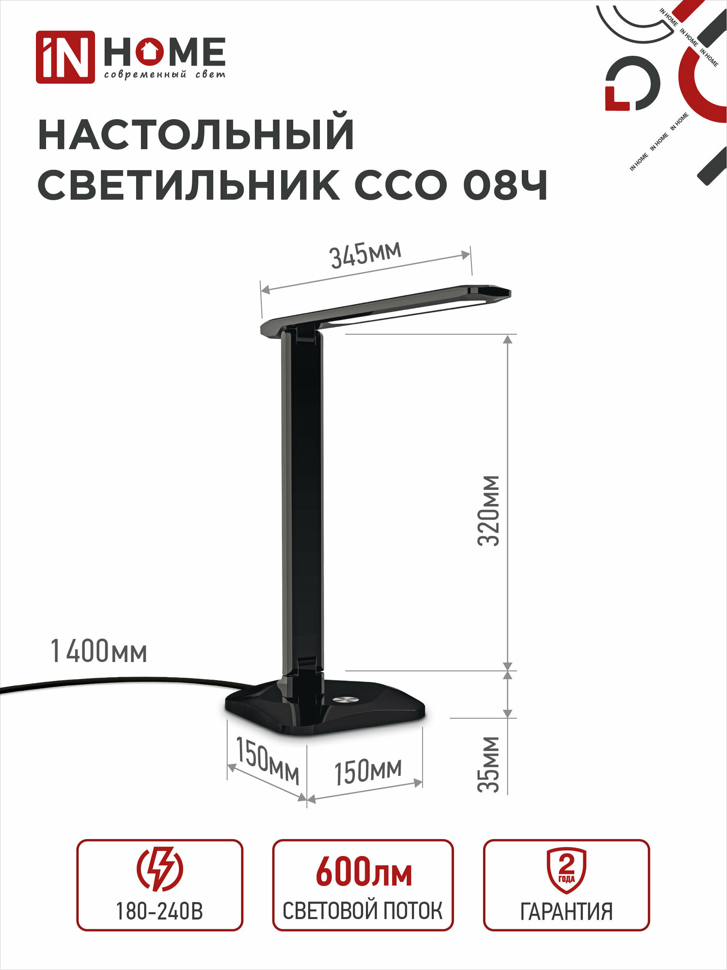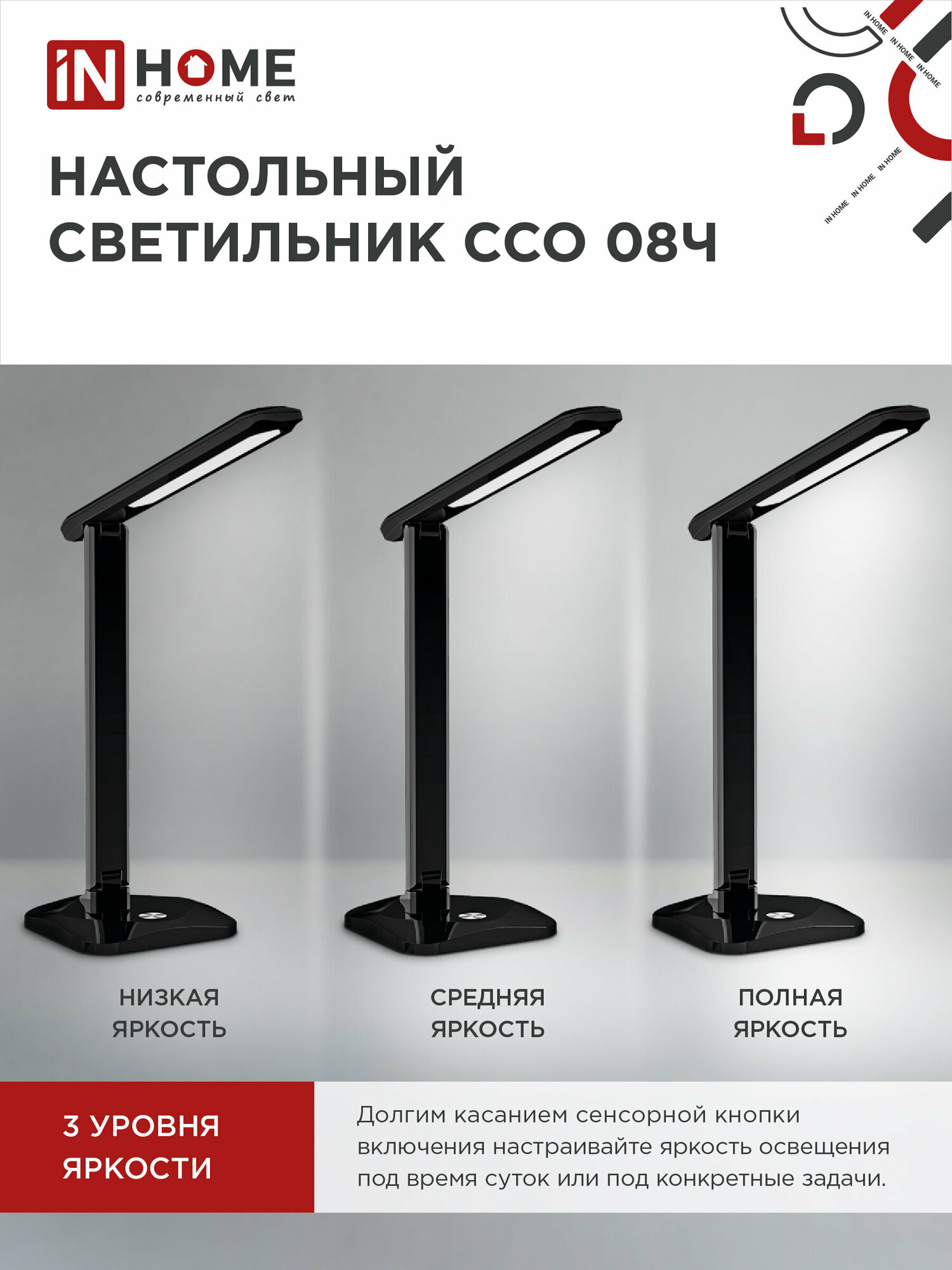 Светильник светодиодный настольный IN Home ССО 08Ч 12Вт 3000-6500К 600лм сенсор-диммер с адаптером черн. 4690612036564