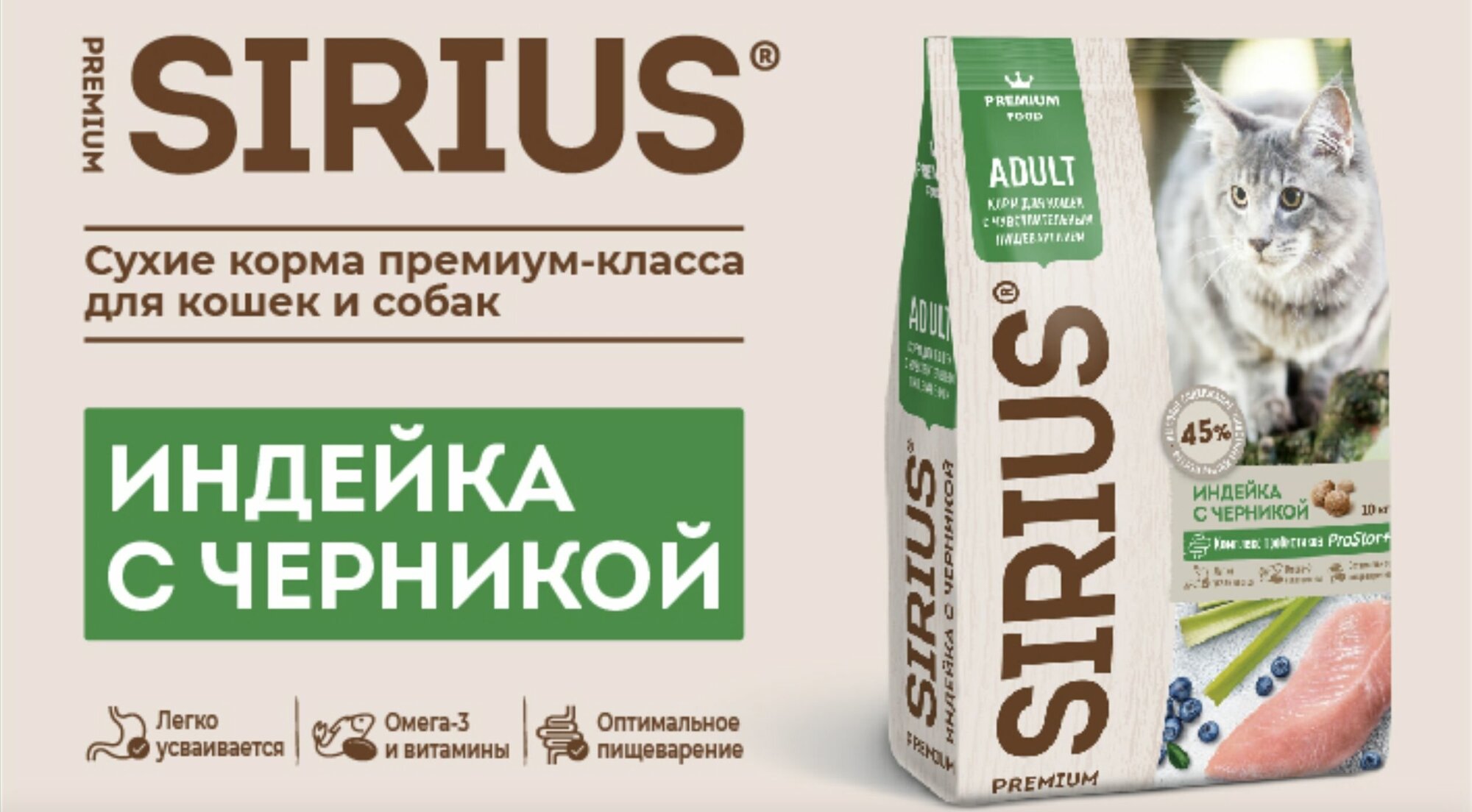 Сириус корм с индейкой для кошек Корм для кошек с чувствительным пищеварением, индейка с черникой SIRIUS 400 гр new