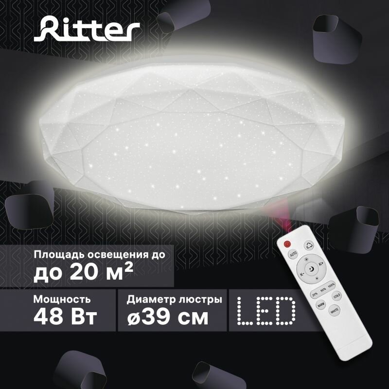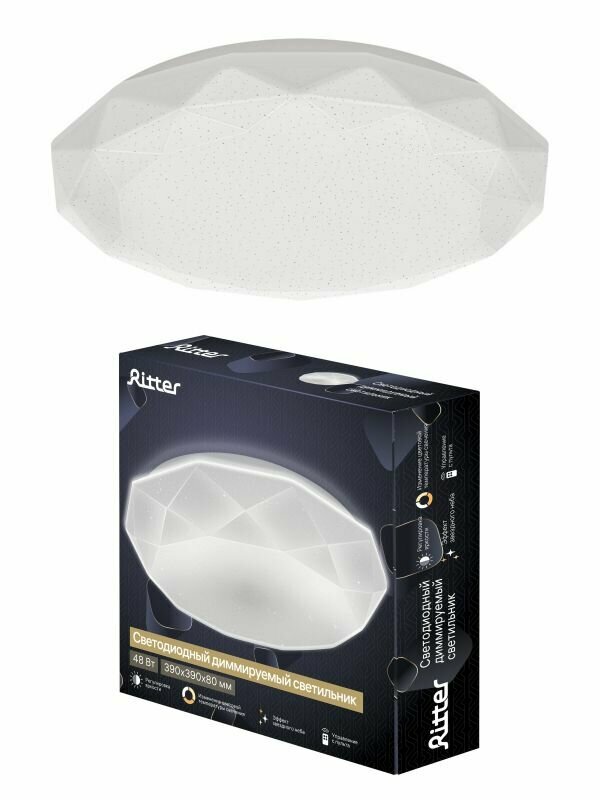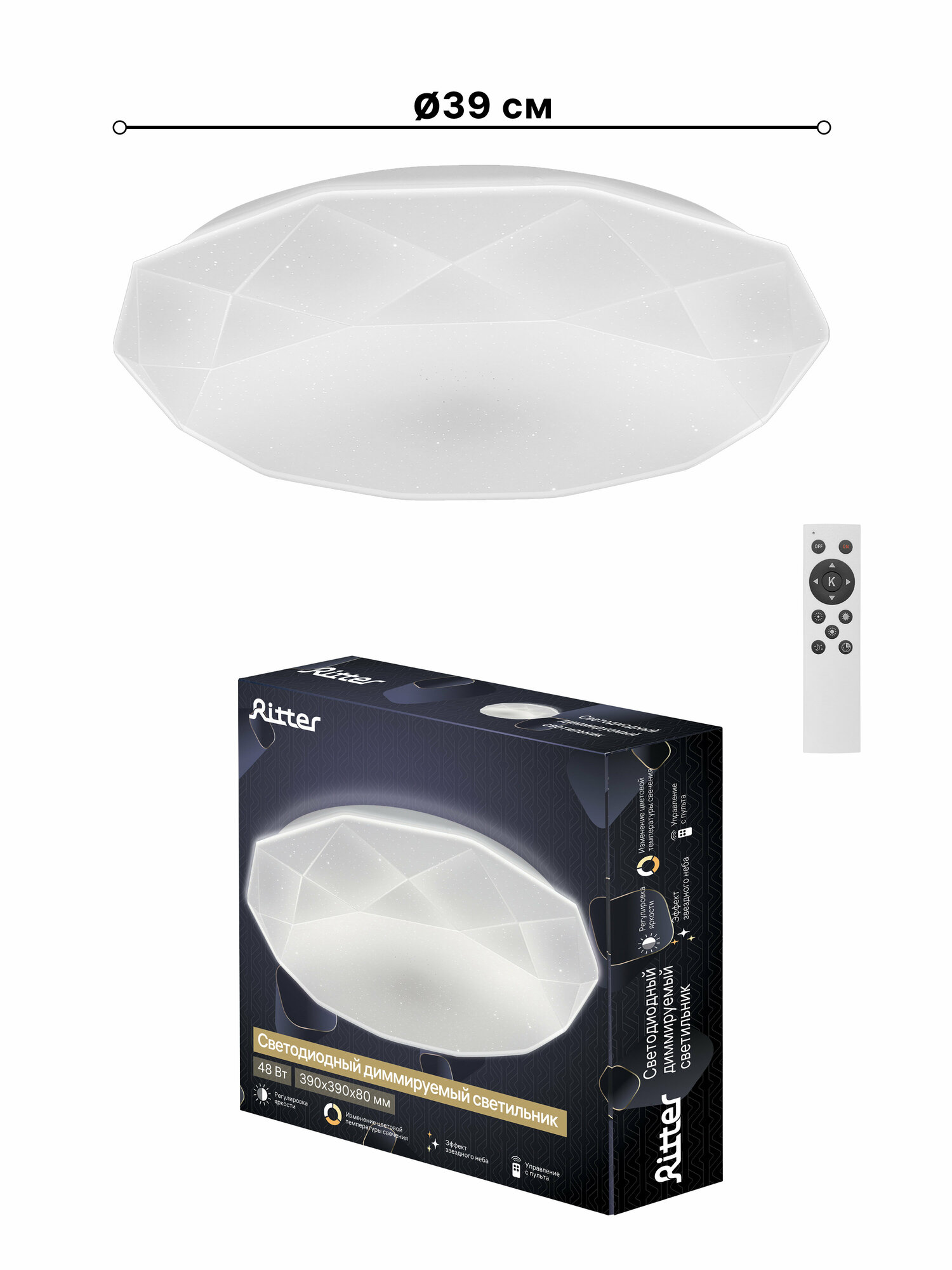 Светильник LED диммируемый с ДУ Ritter Brilliance 48Вт, 3000-6000К, 3800Лм, плафон с эффектом звездн .