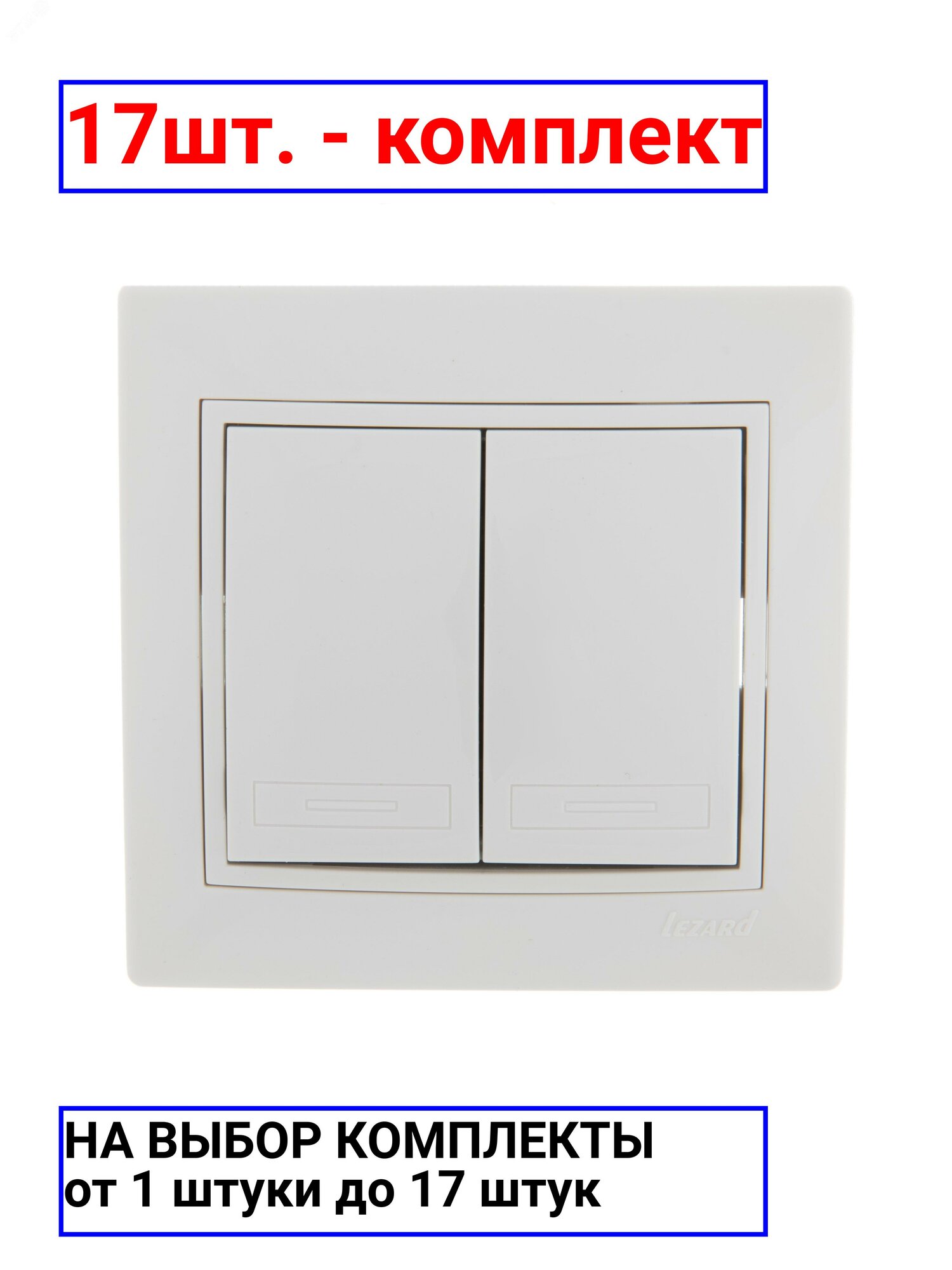 Купить 17шт. - MIRA Выключатель двухклавишный белый с белой вставкой / Lezard; арт. 701-0202-101; оригинал / - комплект 17шт
