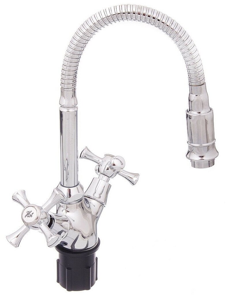 Смеситель для кухни, Эверест, гибкий излив, с кран-буксой, хром, B58-064B