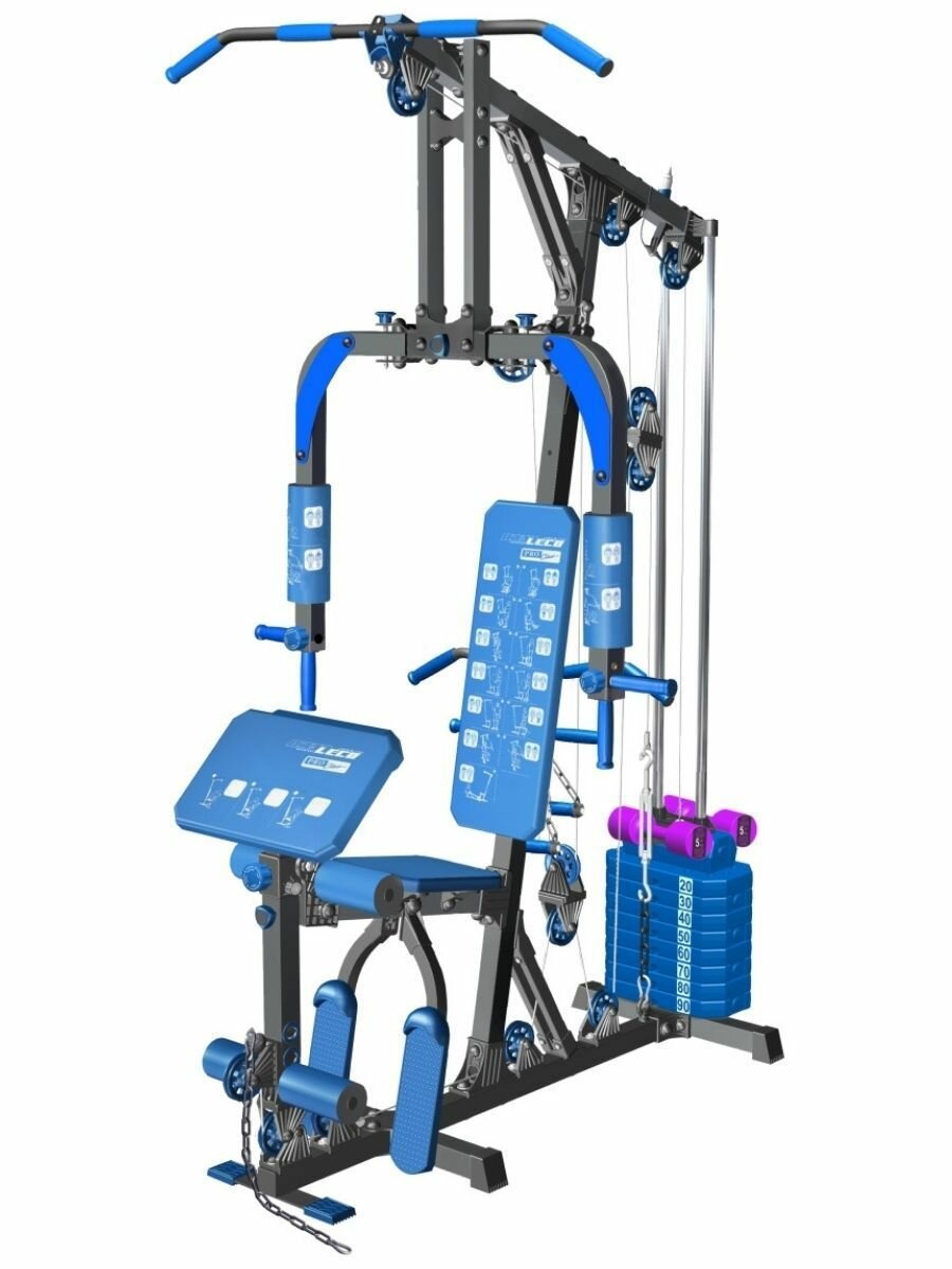 Станция силовая Leco-IT Pro, вес стека 100 кг, с дополнительным оборудованием, без электронного тренера, черно-синий интересное: