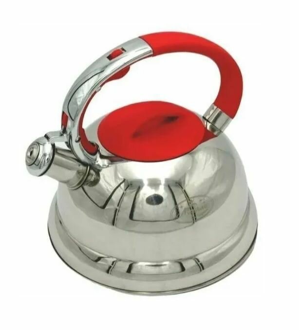 Чайник из нержавеющей стали с фиксированной ручкой Мерали со свистком 3 литра для всех видов плит включая индукционную
